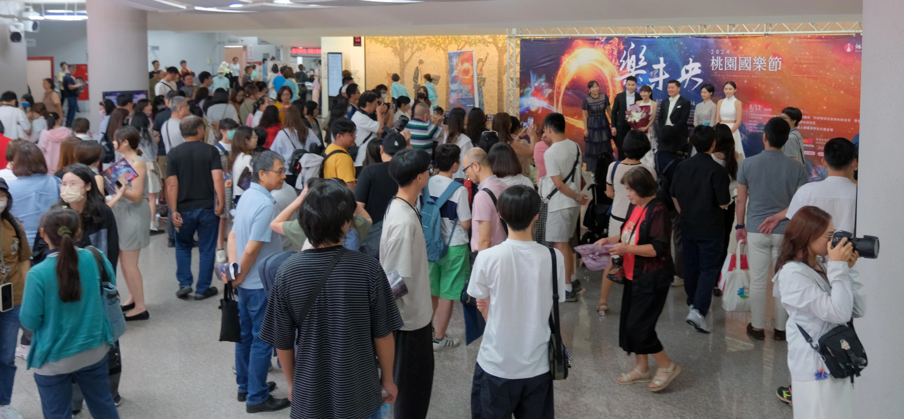 現場蒞臨嘉賓有桃園市議員舒翠玲、桃園市議會秘書長杜淑卿、桃園市政府文化局局長邱正生、桃園市政府社會局副局長陳茹文、天成醫療體系創辦人張育美、臺北市立國樂團副團長徐端容、國立台灣戲曲