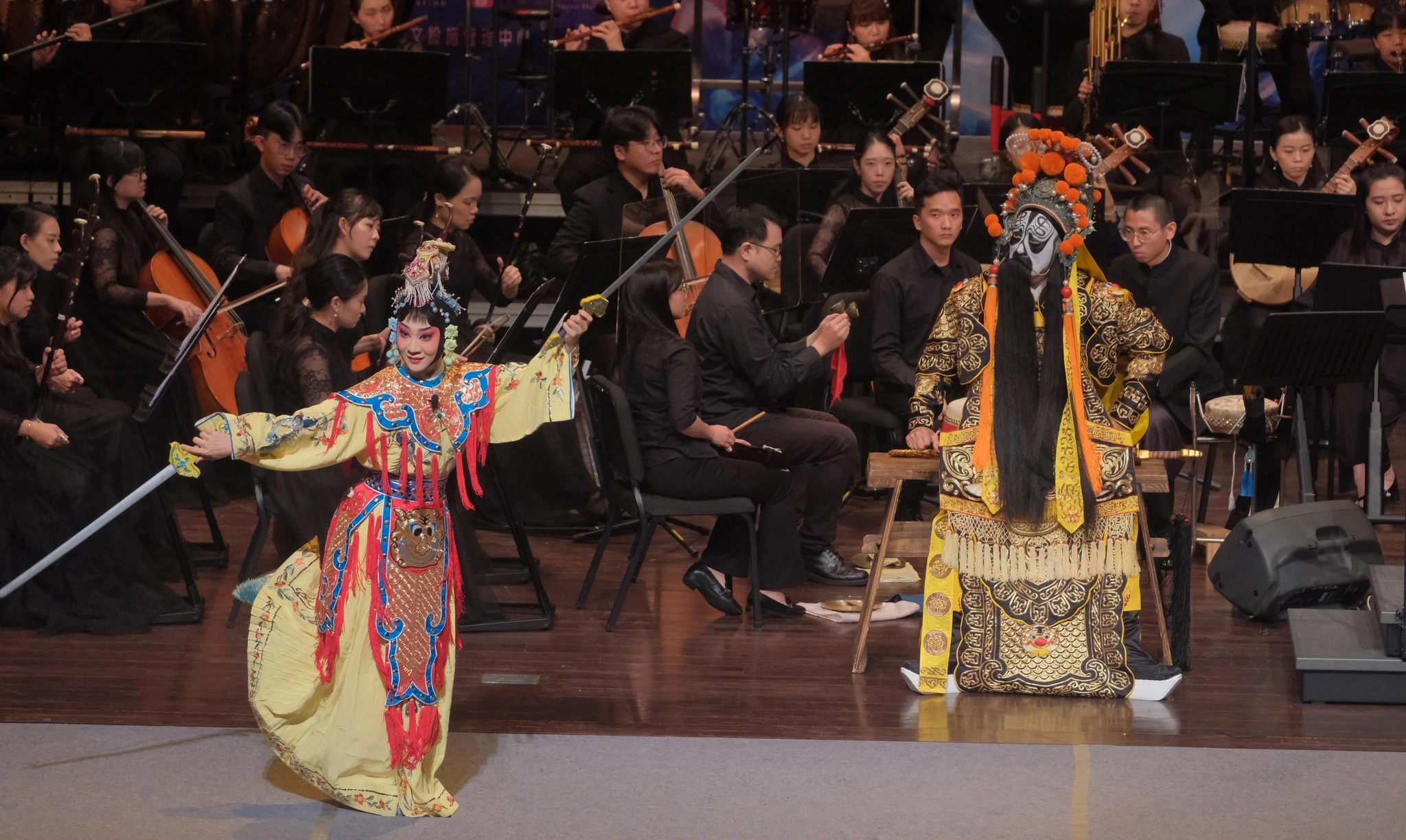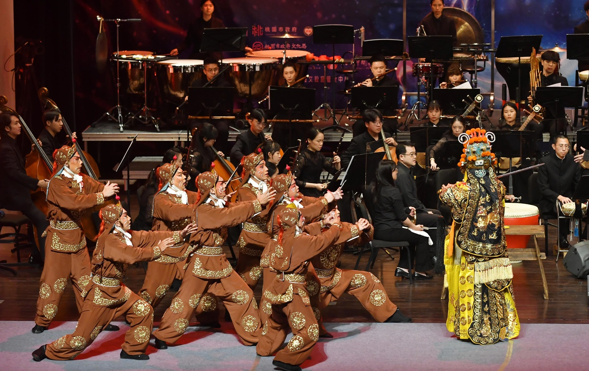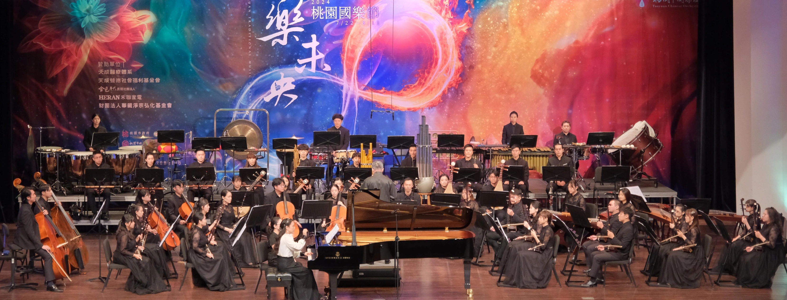 「英雄」2024桃園市國樂節閉幕音樂會,交融國樂、京劇以及鋼琴的多重元素,豐富層次富有創意,更將歷史中的英雄人物故事,以音符轉換為一首首的優美旋律,更結合戲曲中的京劇「霸王別姬」,以多樣的姿態呈現在觀眾面前,帶領各位沉醉在壯烈淒美及英雄氣勢的經典呈現,充滿吸引力,更是展現桃園市國樂團精緻及富有彈性的表現張力。
