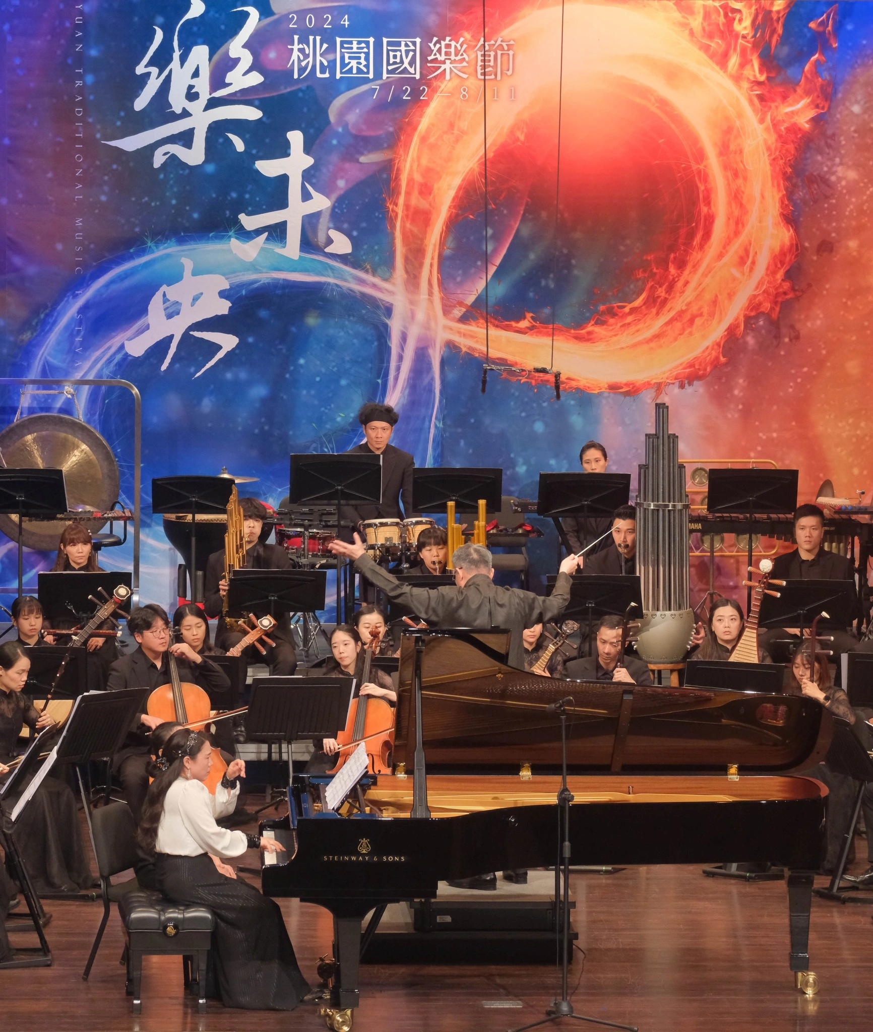 本場音樂會邀請到旅美鋼琴家-胡瀞云(首位獲得以色列「魯賓斯坦國際鋼琴大賽」最高獎及最具觀眾人緣獎雙料得主的華人)以及由京劇戲劇世家的知名文武老生-李寶春所帶領的台北新劇團,分別擔綱上下半場音樂會的重要演出角色,充分展現國樂與西樂的微妙融合,更巧妙的結合京劇獨具特色的音響效果與戲劇展現。全場以「英雄」主題貫穿,顯現2024桃園國樂節藝術表現的重要里程,並開拓跨欣賞音樂的各種角度與創意的表現,更期待來年集結更多元、豐富的優秀音樂家及團體,再度來到桃園這個美麗的城市,一起共享美好的音樂,創造獨一無二的國樂回憶。