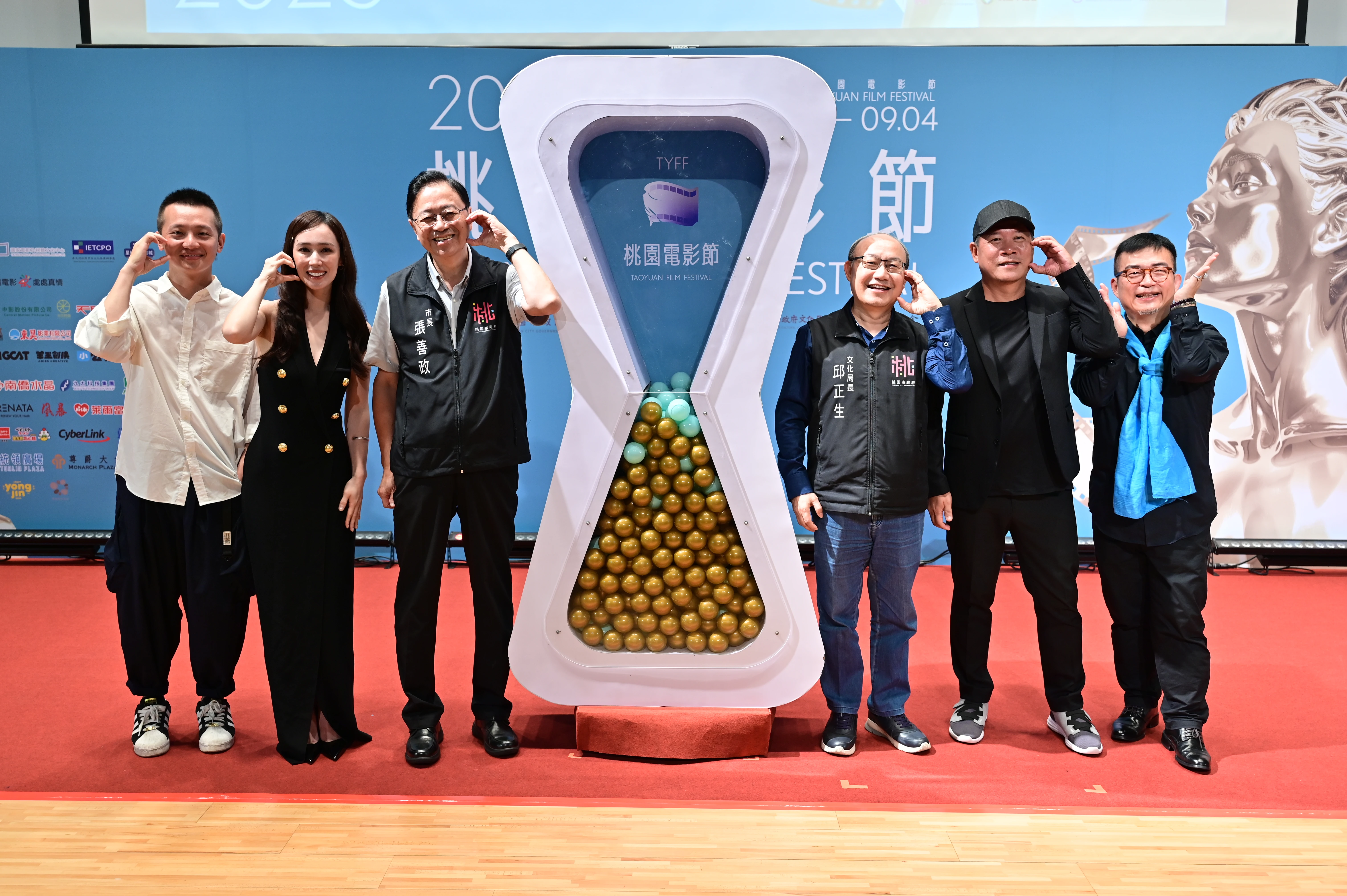 記者會上萬眾期待的重頭戲,就是桃園電影節全新視覺識別標誌,以及今年「桃園電影獎」正式更名後的「繆斯女神獎座」初登場!由葛萊美獎得主蕭青陽現身講解設計理念,以「女神」、「電影膠卷」與「革命旗幟」三大元素,打造出具有動感、優雅與文化象徵力量的全新視覺識別系統。而獎座則以高貴典雅的「繆斯女神」雕塑為主體,女神穿破膠卷而出,金光燦燦,神情堅毅,猶如從膠卷時代直衝未來的創作靈魂,象徵創作者在影像世界中破浪前行、不懼挑戰的精神。
