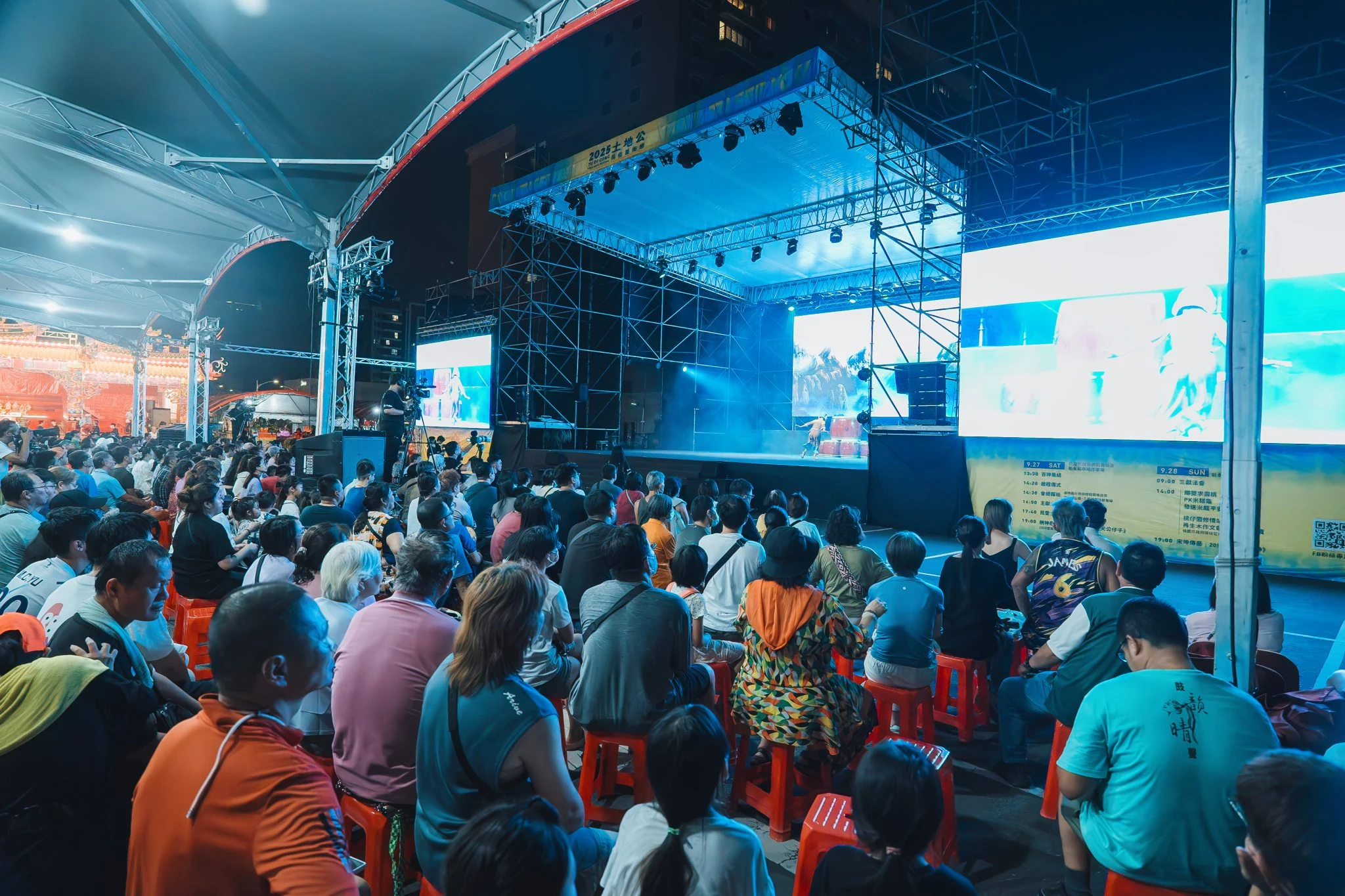 土地公民俗藝術節的壓軸,由宋坤傳藝帶來二十週年鉅作《酬神》,以融合傳統技藝與現代表演的形式,為整日活動劃下最高潮。文化局局長邱正生代表主辦單位致詞,歡迎滿場熱情觀眾,一同見證這場結合傳統與當代的表演盛宴。
