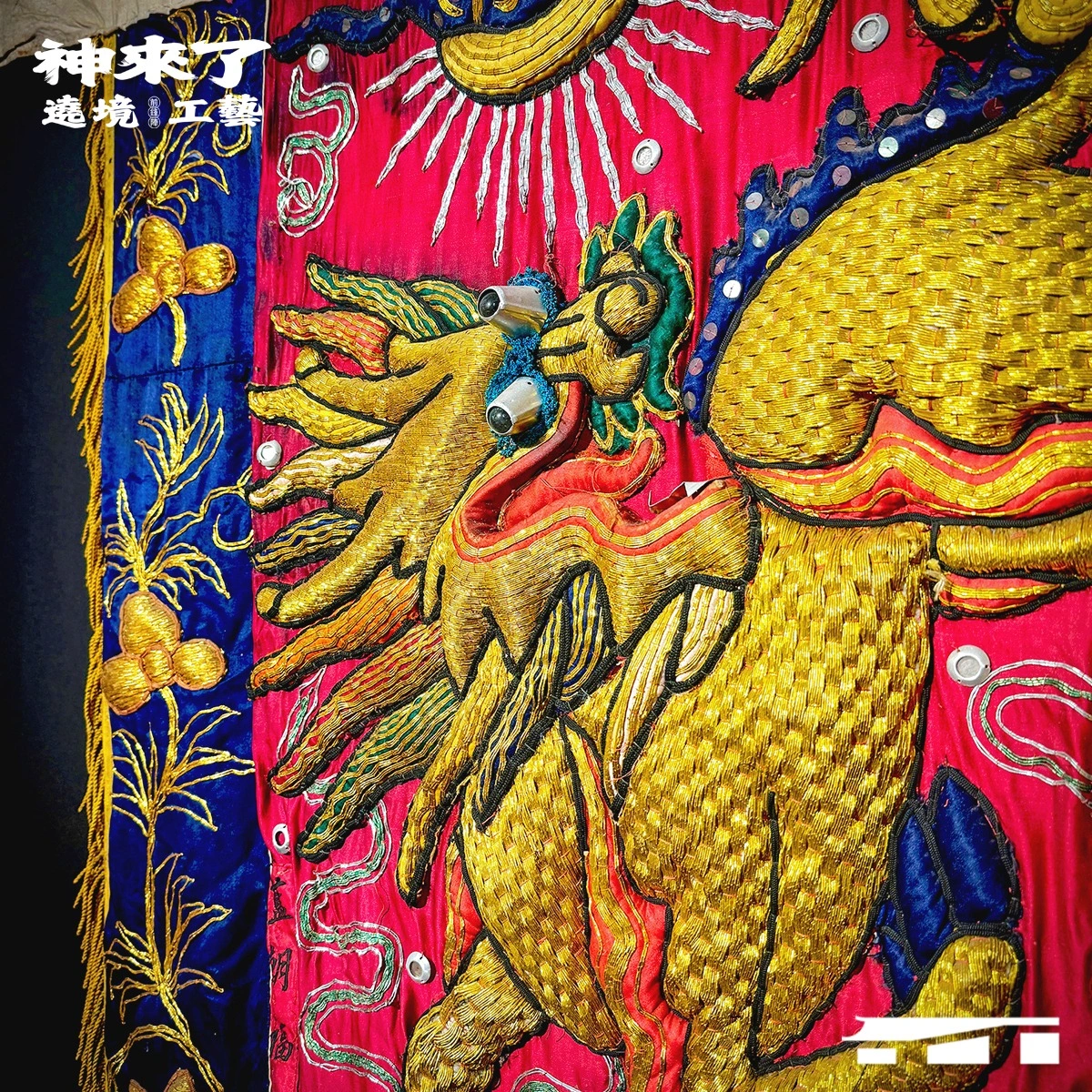 本次特展透過織繡、木雕、金屬、製鑼、糊紙、製鼓六大神級工藝遶境 ,無論是頭旗上說不完的吉祥密碼,還是頭燈細緻鏤空的木雕,種種工藝細節多到滿出來,讓人忍不住讚嘆「太神啦!」🤩