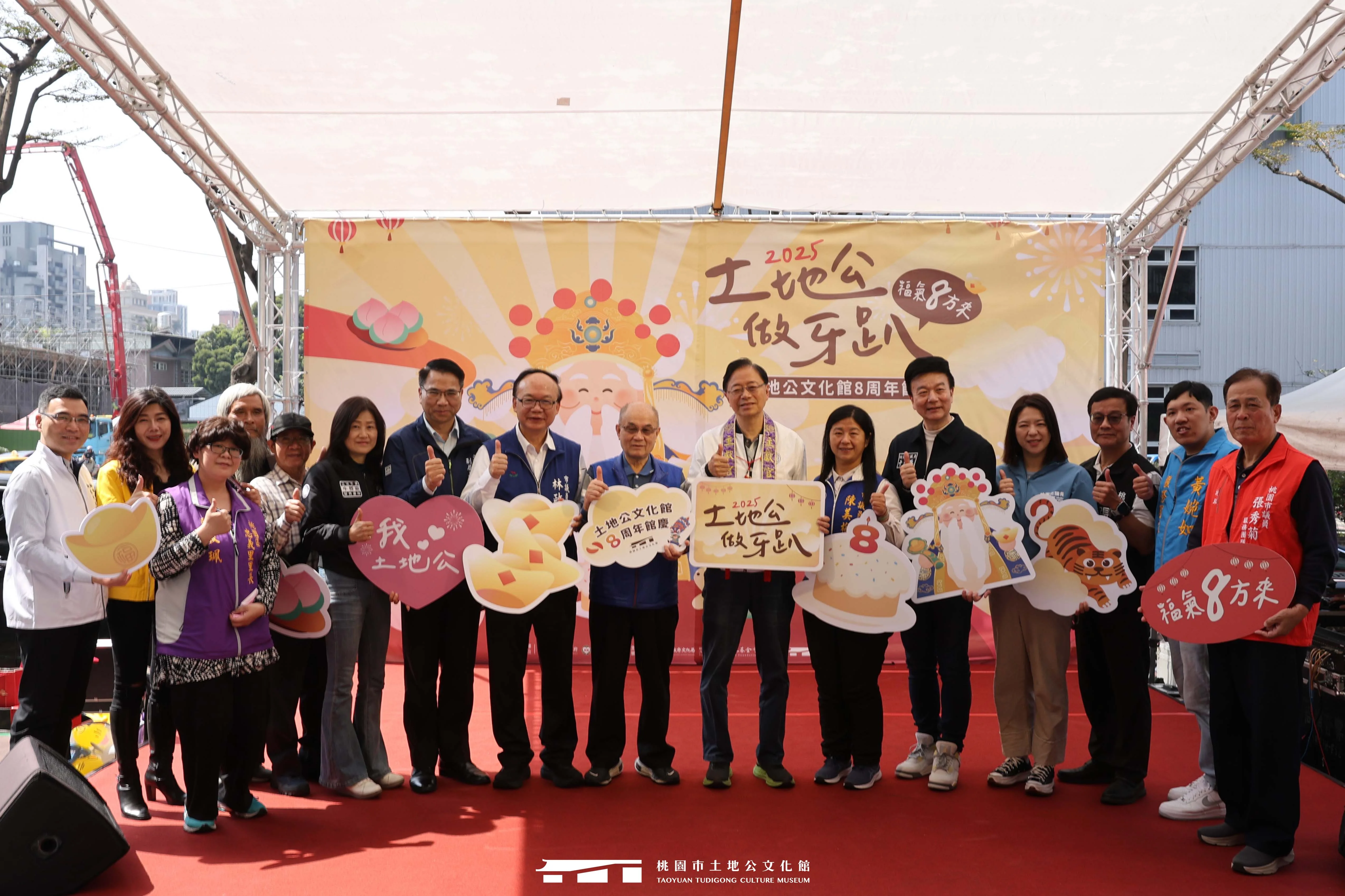 今年農曆二月初二,桃園市土地公文化館迎來了八周年的館慶!張善政市長與信眾們一同祝壽祈福,相信在土地公庇佑下,所有參拜的鄉親朋友,新的一年裡將平安順遂、事業興隆,桃園發展也將蒸蒸日上。