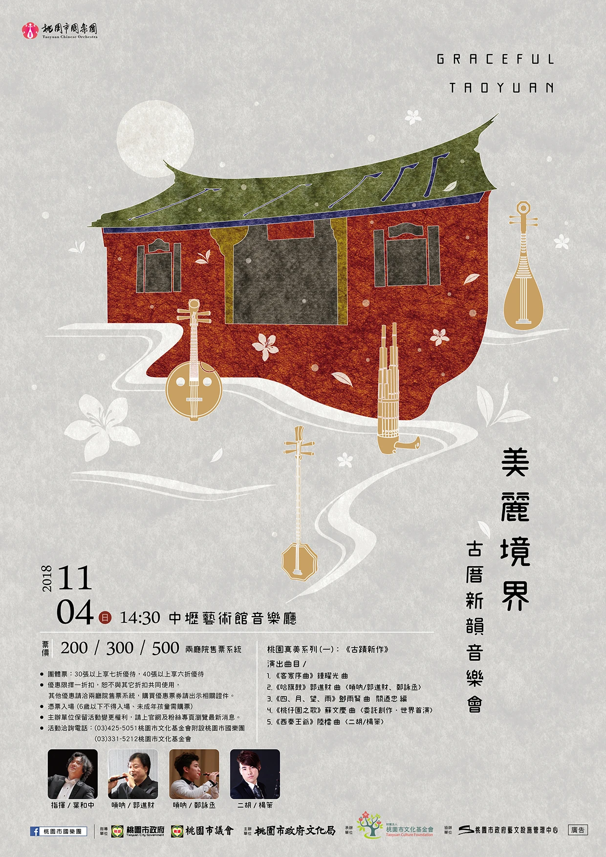 今年度壓軸專題音樂會,桃市國將用音樂為桃園換上新裝,描繪桃園豐厚的人文特色、族群多元融合以及獨特的古厝風貌,在聆聽樂音的同時,有視覺及聽覺雙重饗宴。