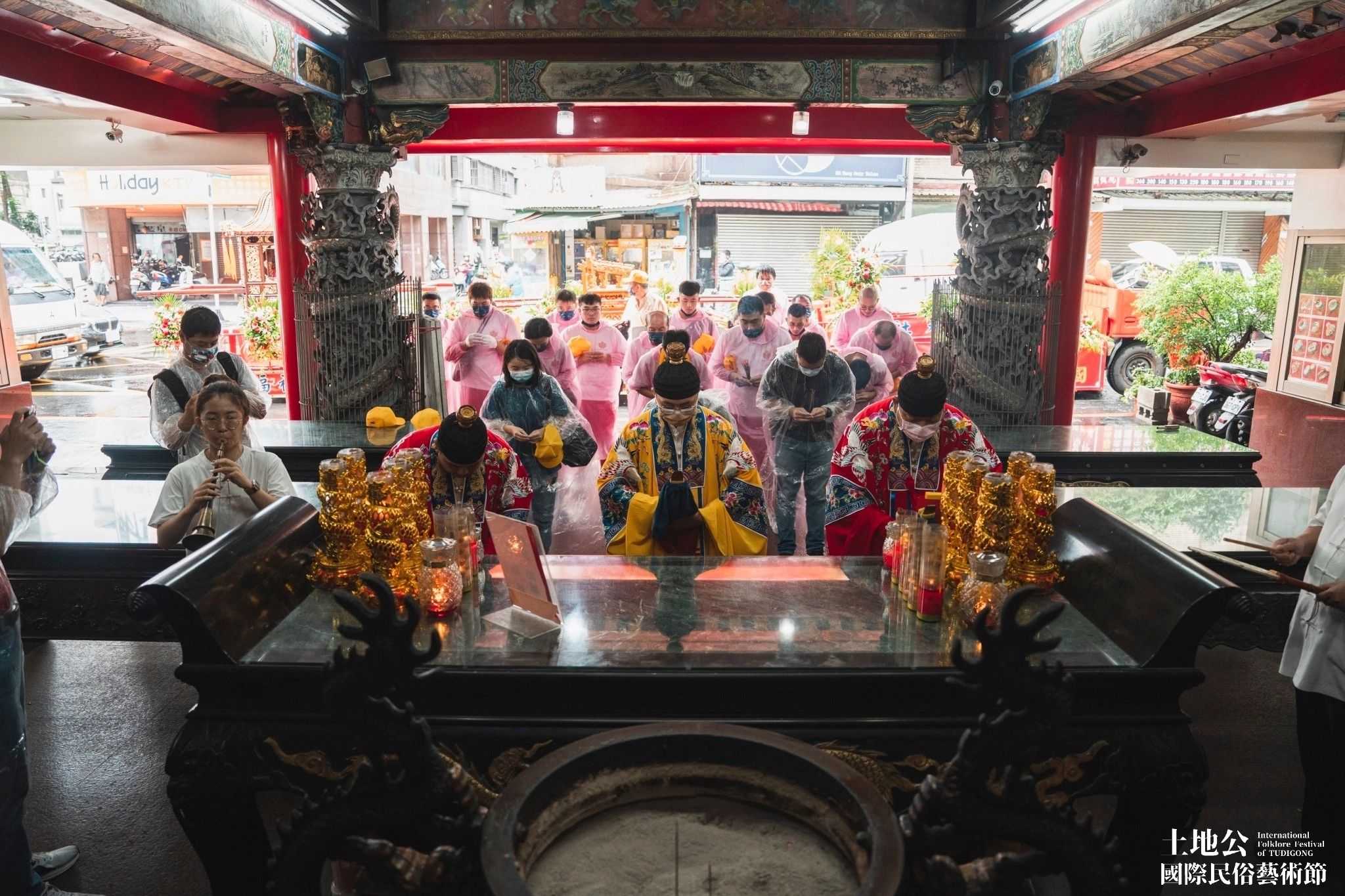 文化館福德宮鎮殿的土地公,是土地公國際民俗藝術節的東道主──「桃園市公」。2022年9月3日一早,在文化館福德宮,由主祭官正一派桃園妙應壇許少豪道長主持三獻禮、三獻酒的道教儀式,並恭讀祝文後,由桃園大廟景福宮鈞天社的陣頭接駕,引領市公前往景福宮,及桃園開基土地公廟-十五街庄福德宮,迎請該廟的鎮殿土地公,一同移駕至活動會場安座。