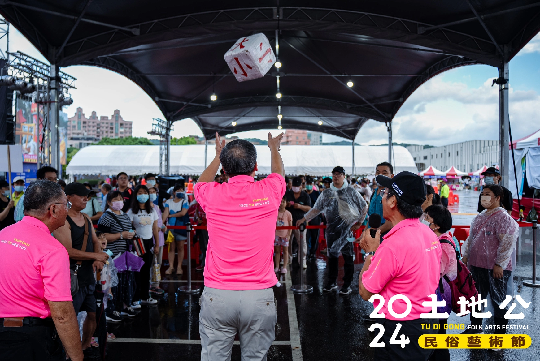 「擲筊求壽桃」的活動開始不久,傾盆大雨,但民眾興致不減,擠滿帝王帳下繼續排隊。因紅壇稍有淹水,不適合繼續擲筊,百多顆壽桃決定不繼續擲筊,直接發送排隊民眾。擲筊求壽桃之後是「PK米糕龜」,一組20位信眾參與,擲骰比大小,最終只能有一位獲勝者能得到精緻的米糕龜。現場歡樂,高喊大小之聲不絕於耳。之後開放米龍平安米給在現場排隊的民眾自行裝罐帶走保平安,1000個小瓶裝米被索取一空。