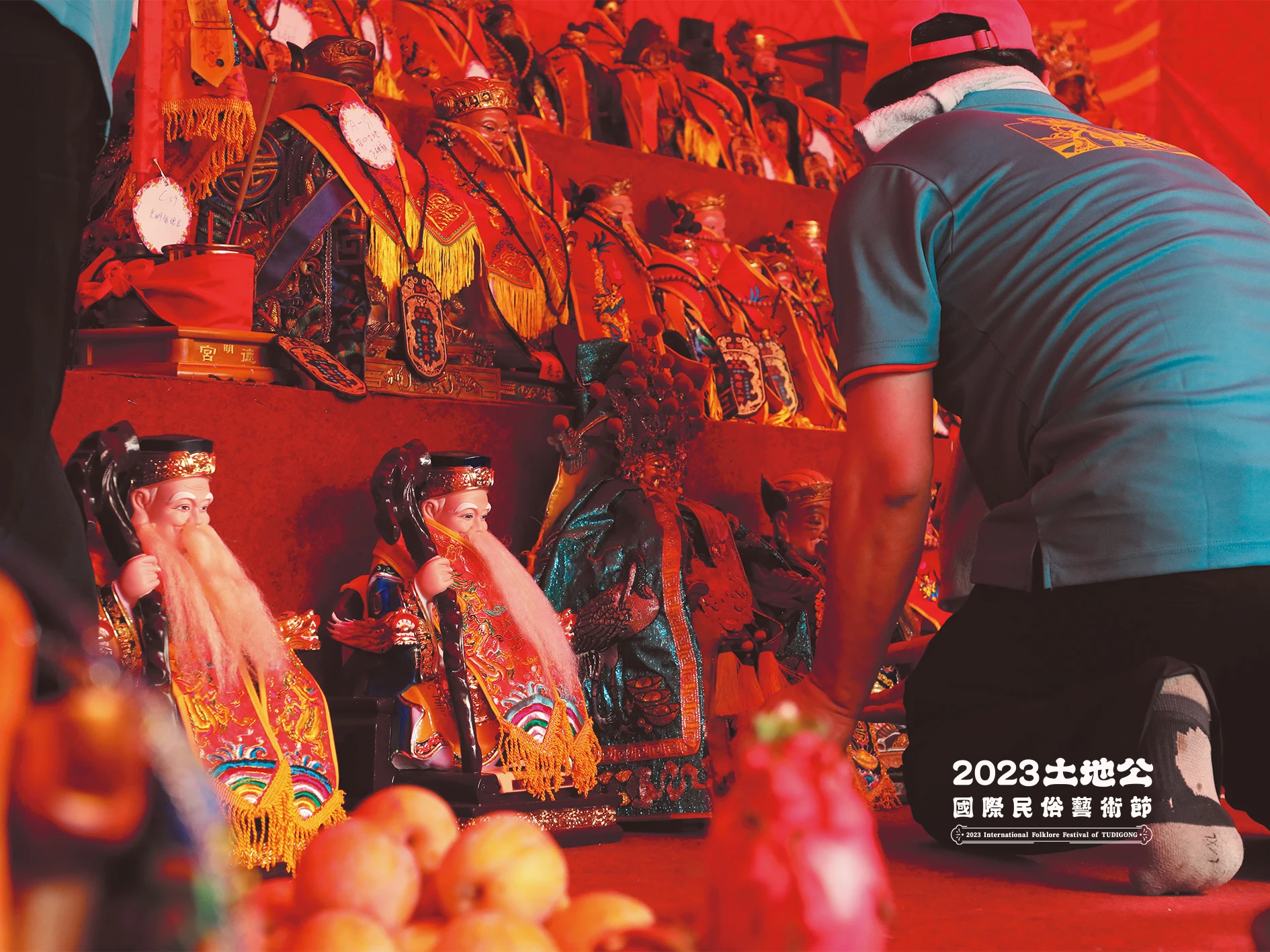 2023年9月16日(六),各宮廟代表將土地公神尊安座於桃園市新永和市場旁停車場紅壇區,紅布鋪列的三寶架上,端坐著一尊尊面容慈祥的土地公。全國96間宮廟共123尊土地公共同祈求風調雨順 、國泰民安!