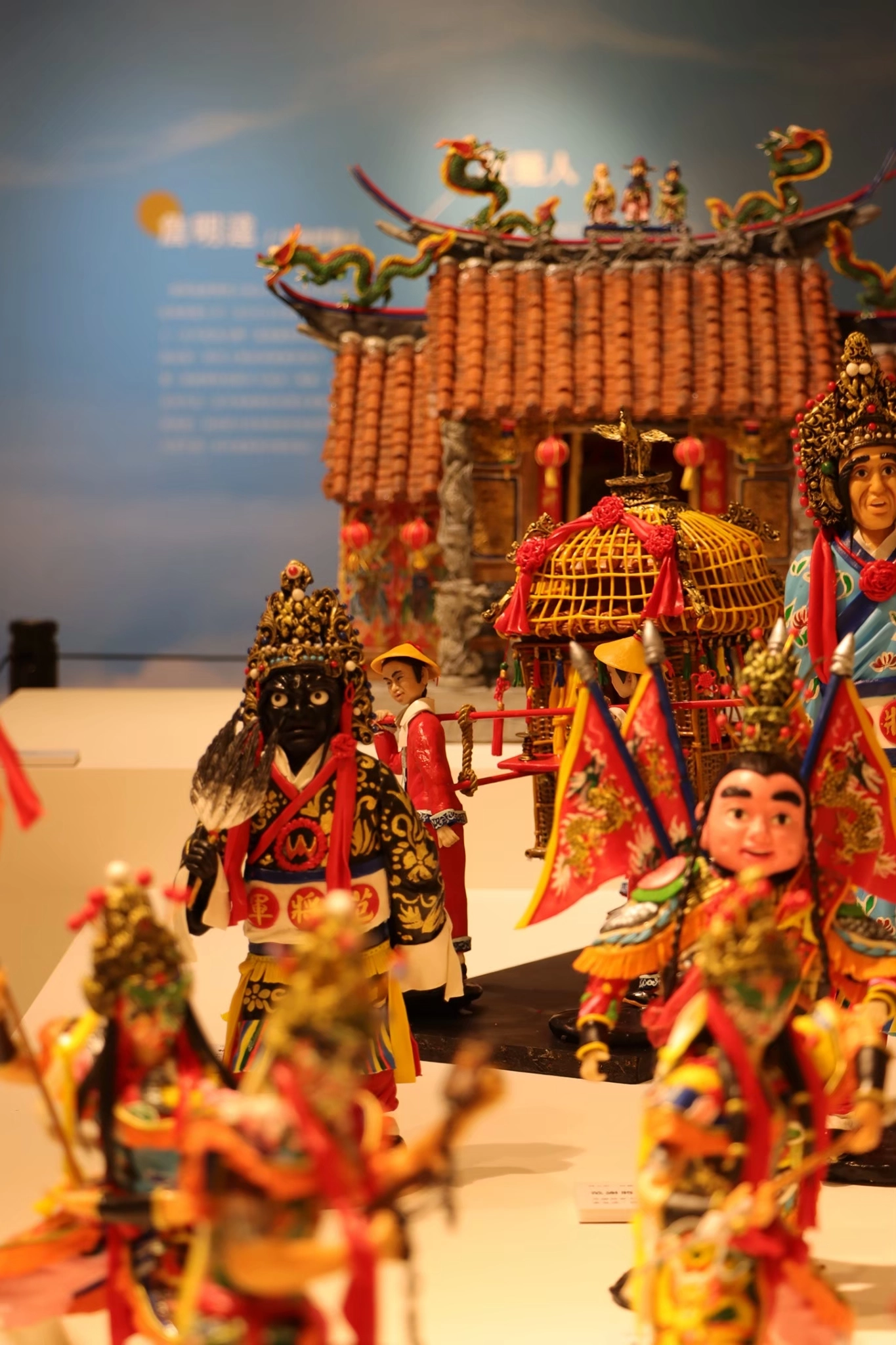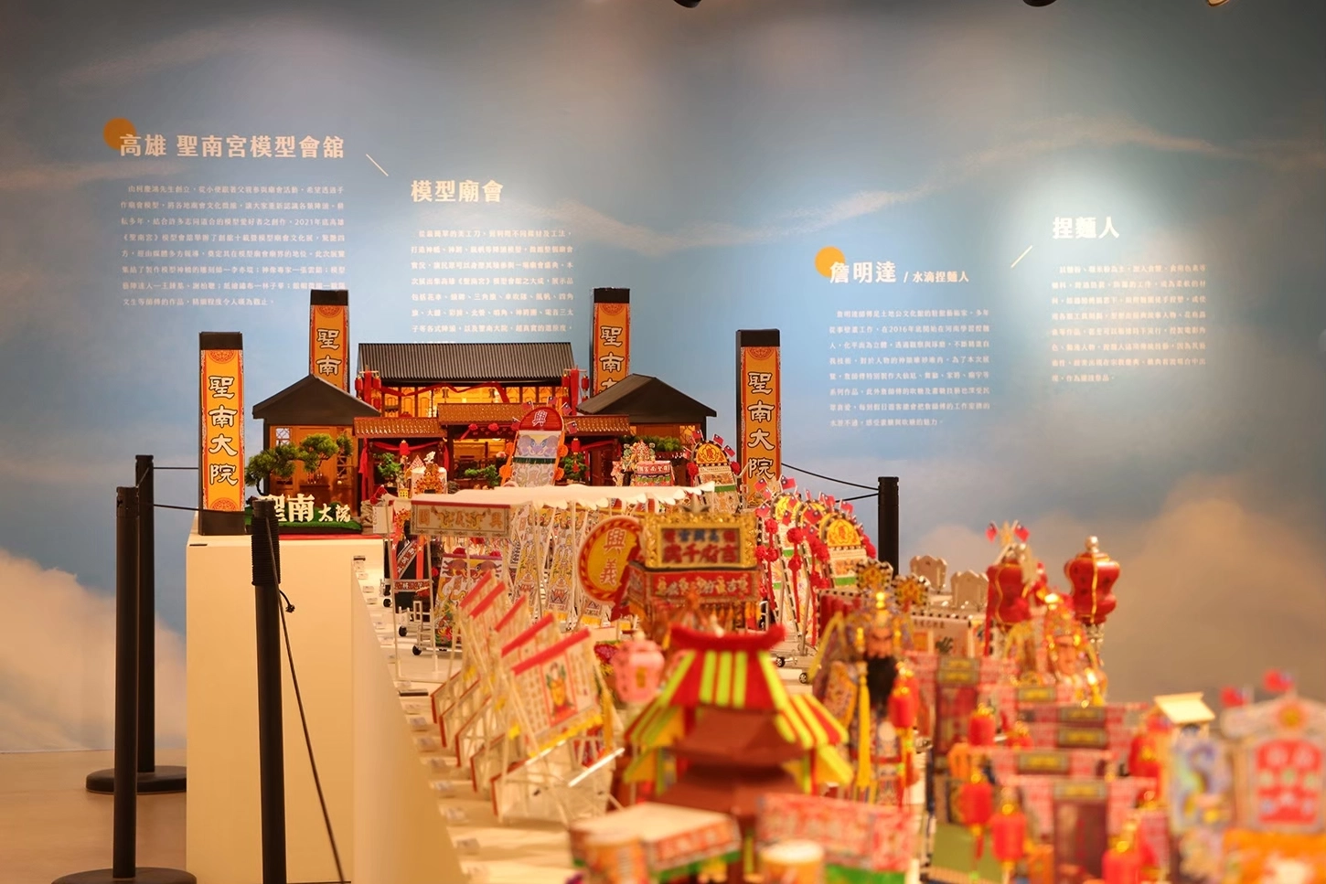 除了實體陣頭展現廟會文化,為了讓更多人親近廟會與陣頭,藉由捏麵人、模型、樂高積木的塑造,表現出廟會縮影,將平常威武的神將、偌大的廟宇縮小在展台上,讓民眾能從不同匠師的手工藝、不同材質的創作角度來認識廟會文化。