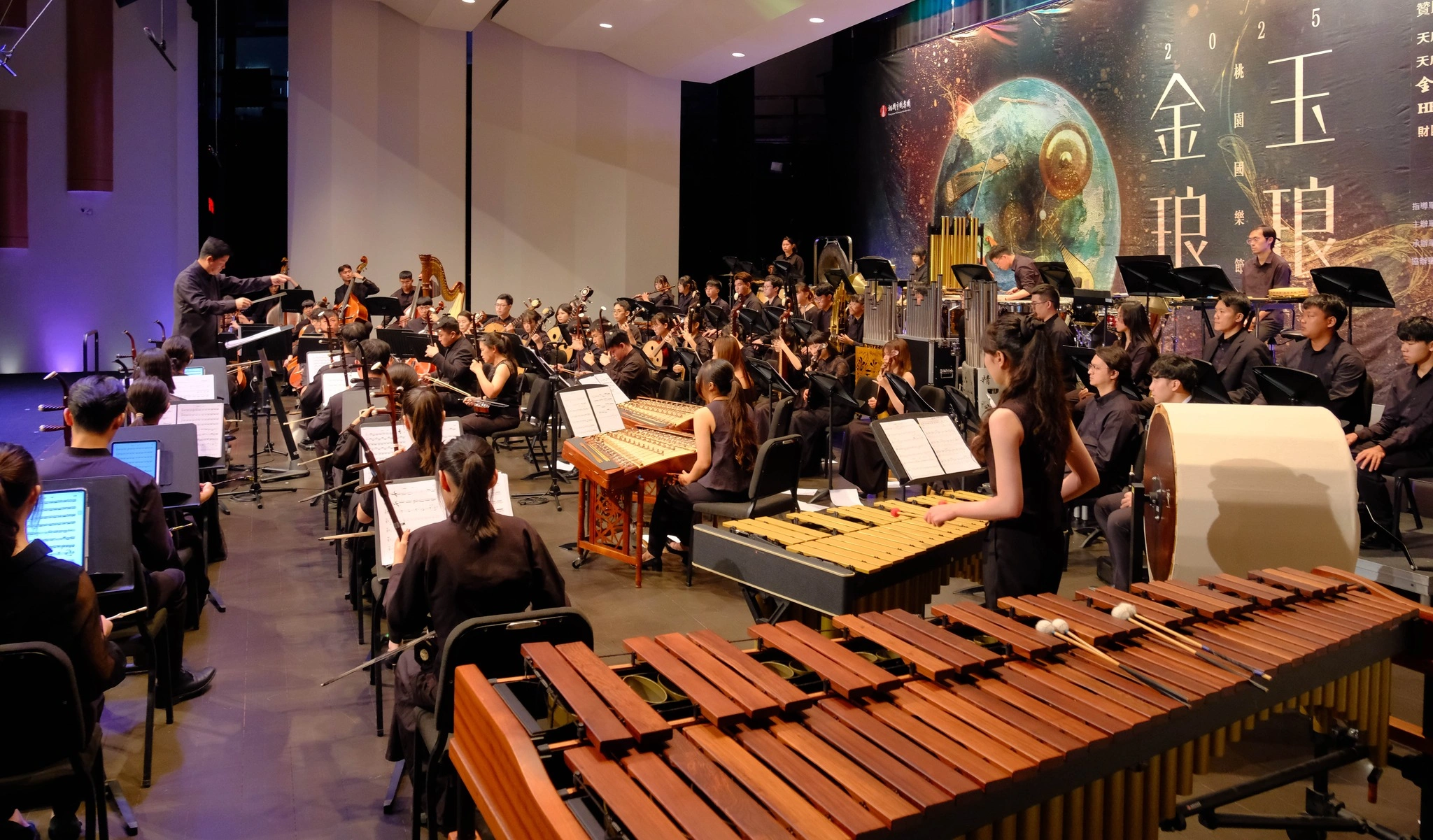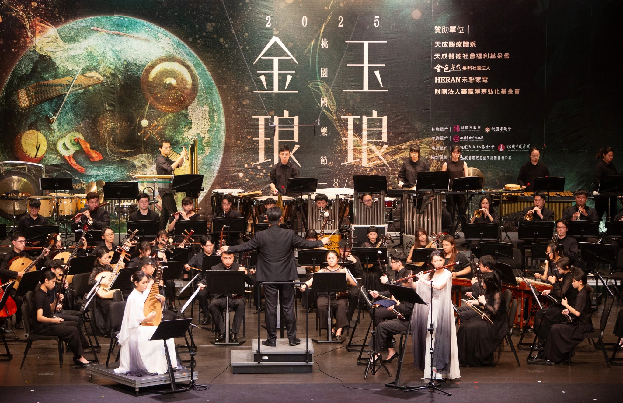 2025桃園國樂節精彩呈現「團聚桃園」串流福爾摩沙音樂會,由桃園市國樂團首度與國藝會 Taiwan Top 演藝團隊-嘉義民族管弦樂團交流演出,展開一場跨城市的音樂對話與文化交流。在三位風格鮮明的指揮安敬業、呂翼雲、劉士維接連呈獻豐富的音樂曲風,展現多重層次的藝術特質,共同呈現出極具層次與情感張力的演出。