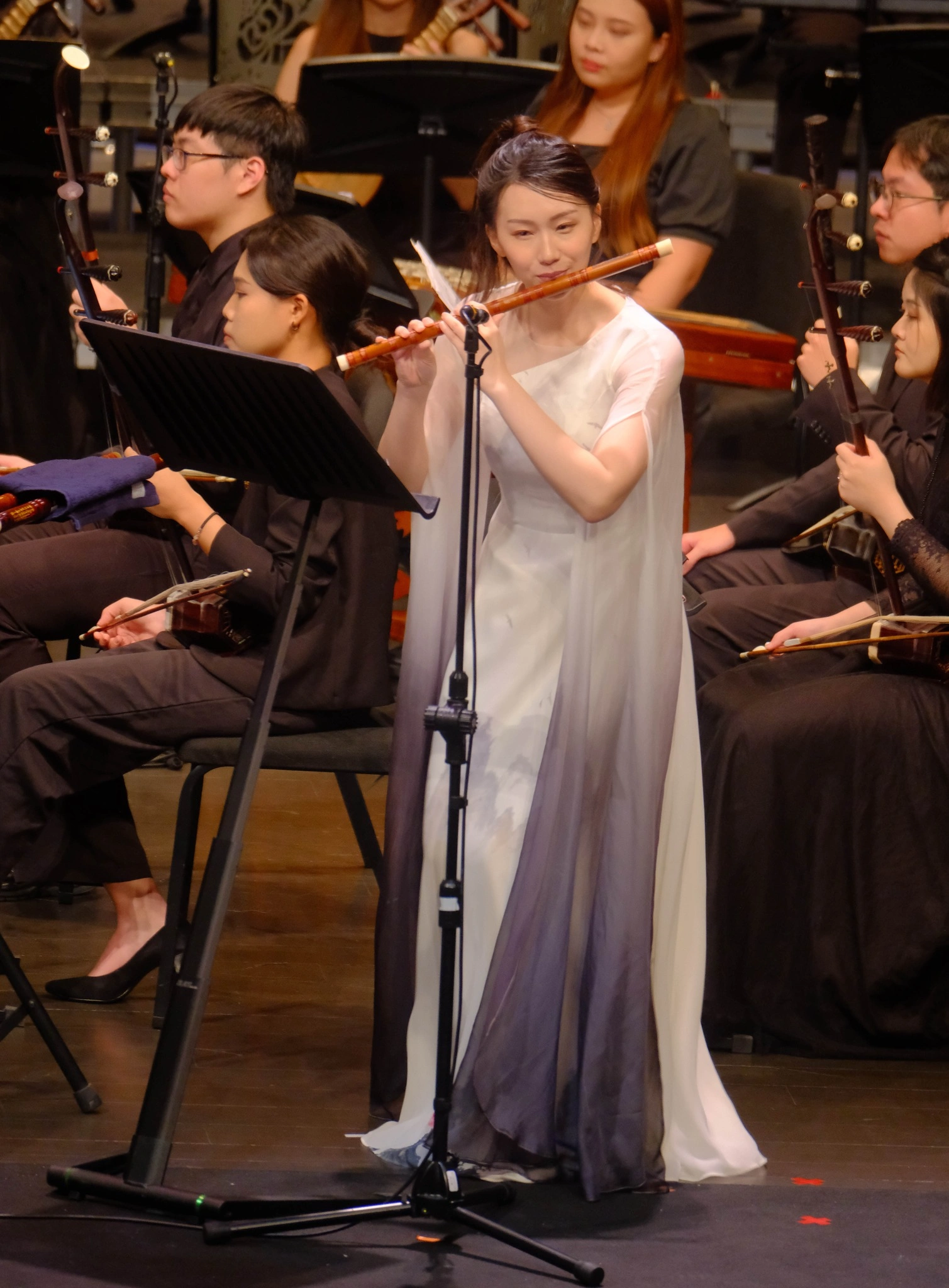 亮點曲目如《武聖》、《聽香》展現出嗩吶演奏家林裕朋、笛演奏家陳乙萱與琵琶演奏家石丞玉精湛技藝;而《我們飛》、《姊妹島》、《劉家古厝》等作品更猶如台灣豐富多樣的聲音地景,傳遞著台灣土地的文化溫度。此次合作不僅是藝術上的交流,更象徵城市間的友好與連結,桃園市國樂團將持續以音樂為橋,串聯城市,擁抱多元,共創文化新篇章