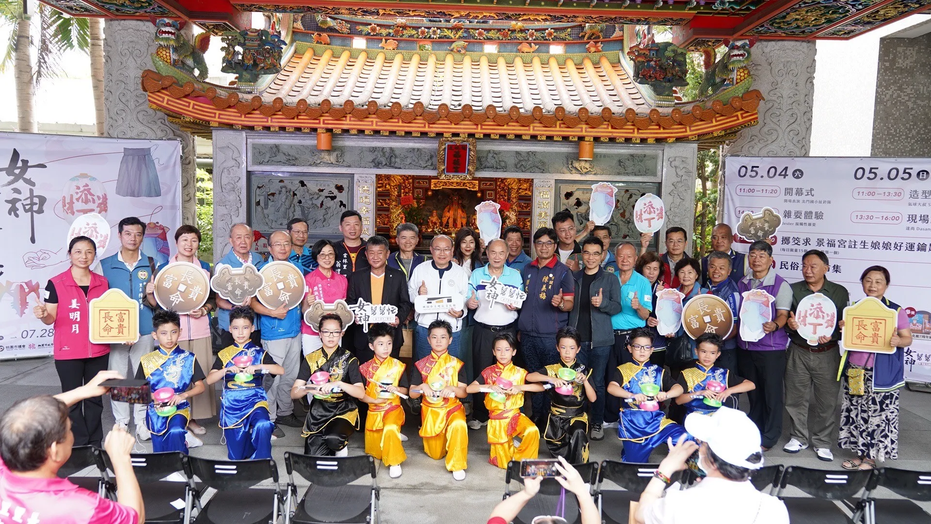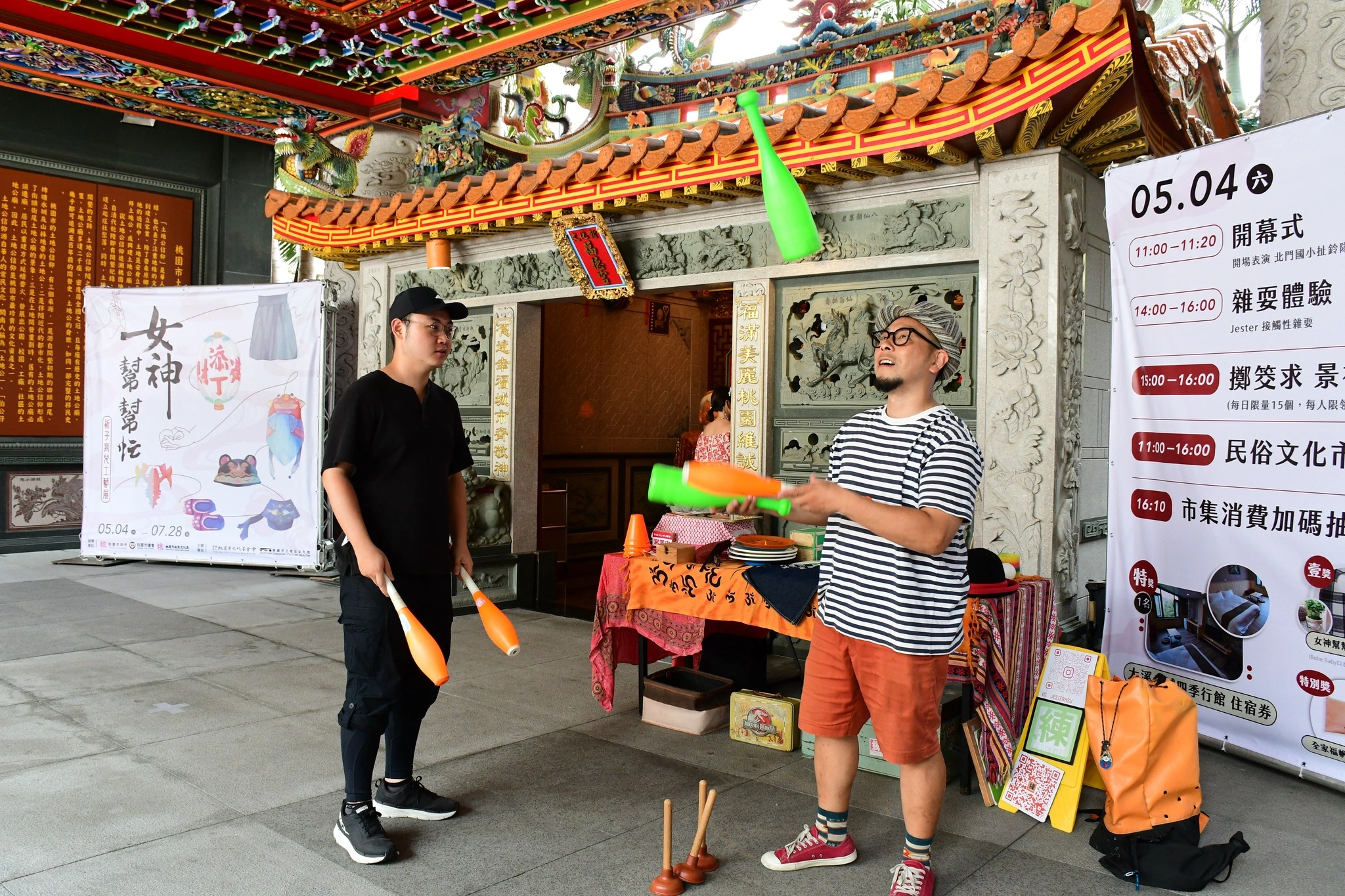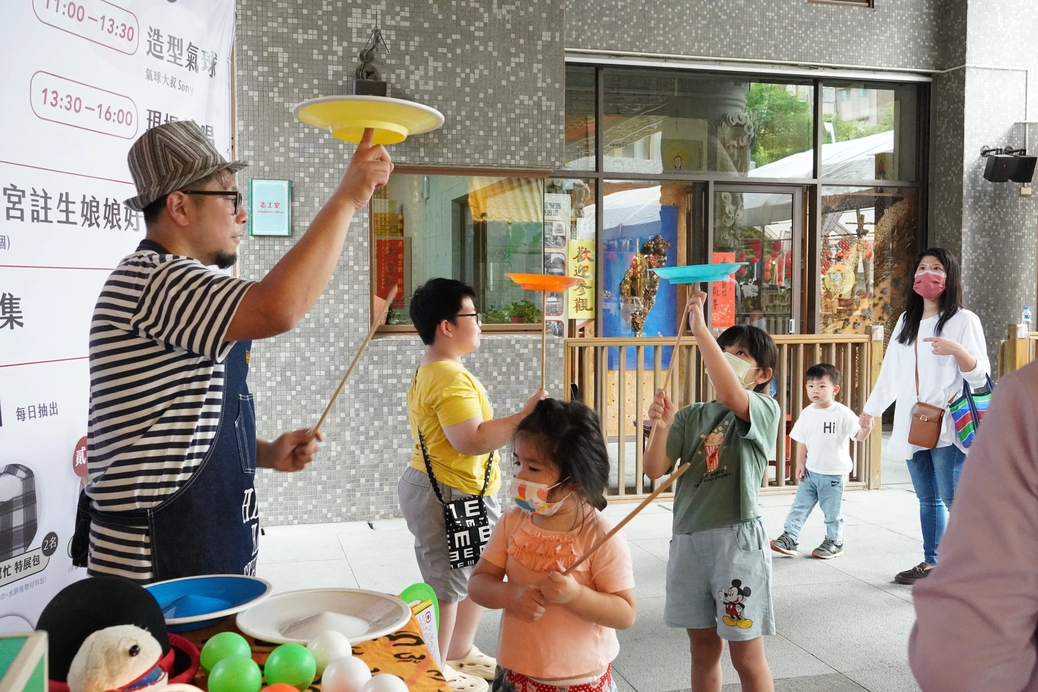 桃園市土地公文化館「女神幫幫忙—祈子育兒工藝展」特別選在母親節前一周,5/4於文化館廟埕舉辦盛大的開展活動。展覽網羅傳統民間進行相關習俗儀式時所使用的敬品,如象徵七娘媽神尊的紙糊七娘媽亭,透過將近50件媒材橫跨木雕、織繡、版印、紙紮等與「生育」有關的珍貴民俗工藝作品,介紹女神「註生娘娘」及「七娘媽」如何神助攻庇佑婦女與孩童,帶領觀眾認識各工藝在傳統民俗上的用途及寓意。