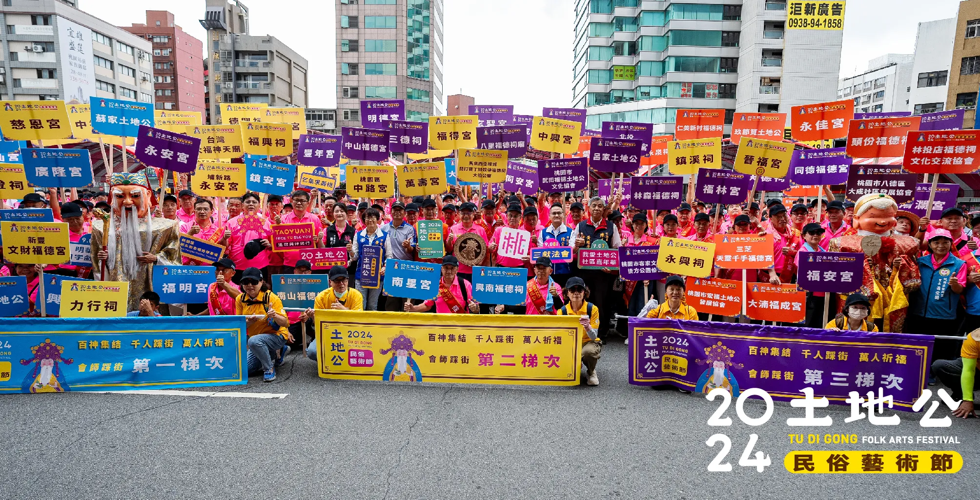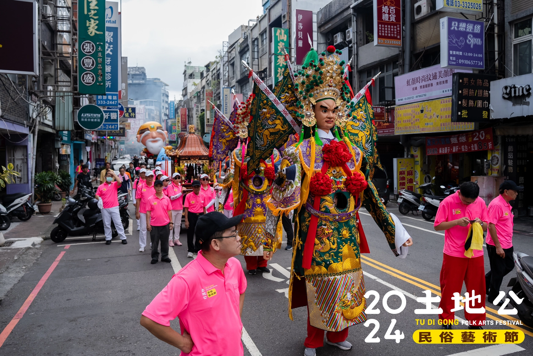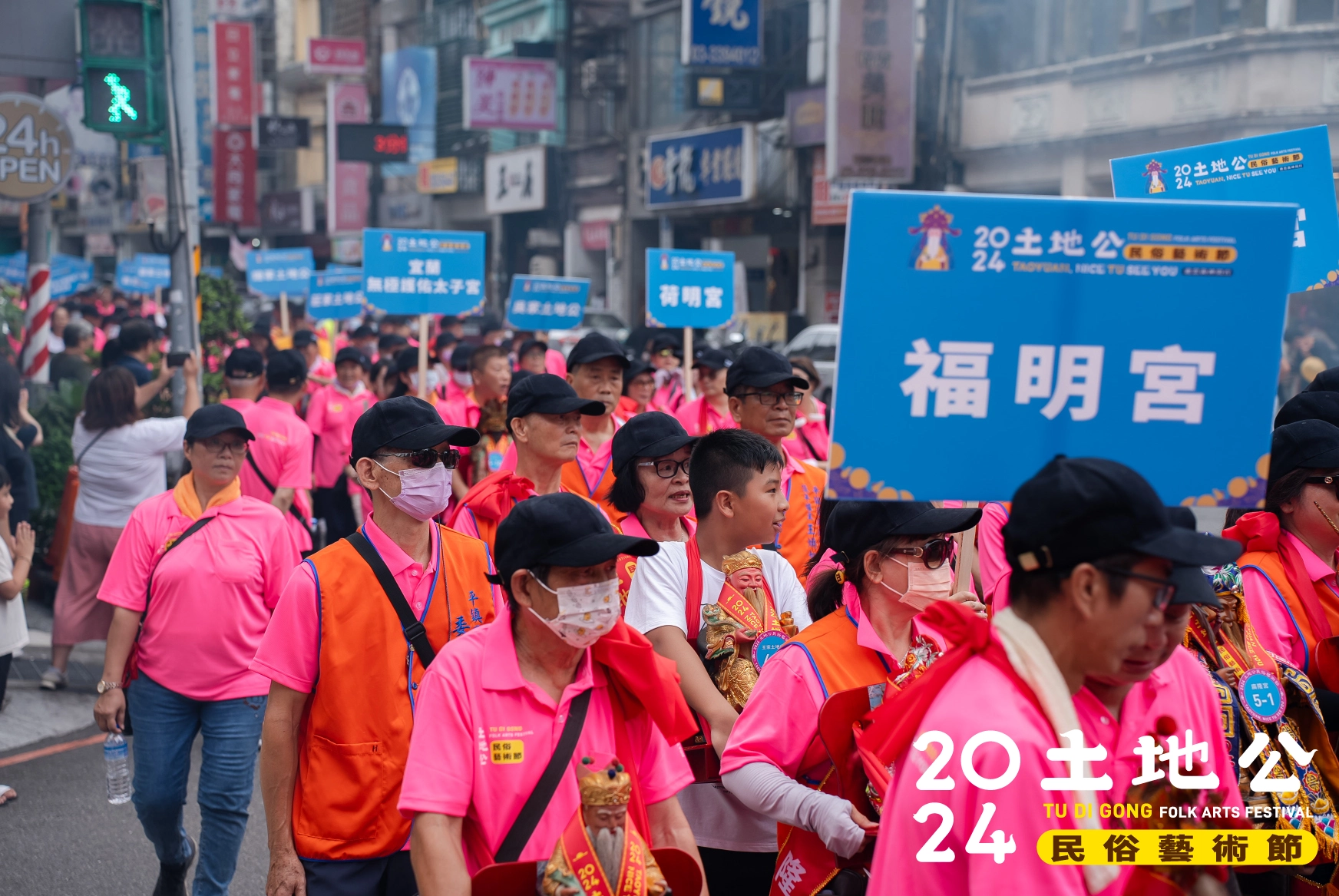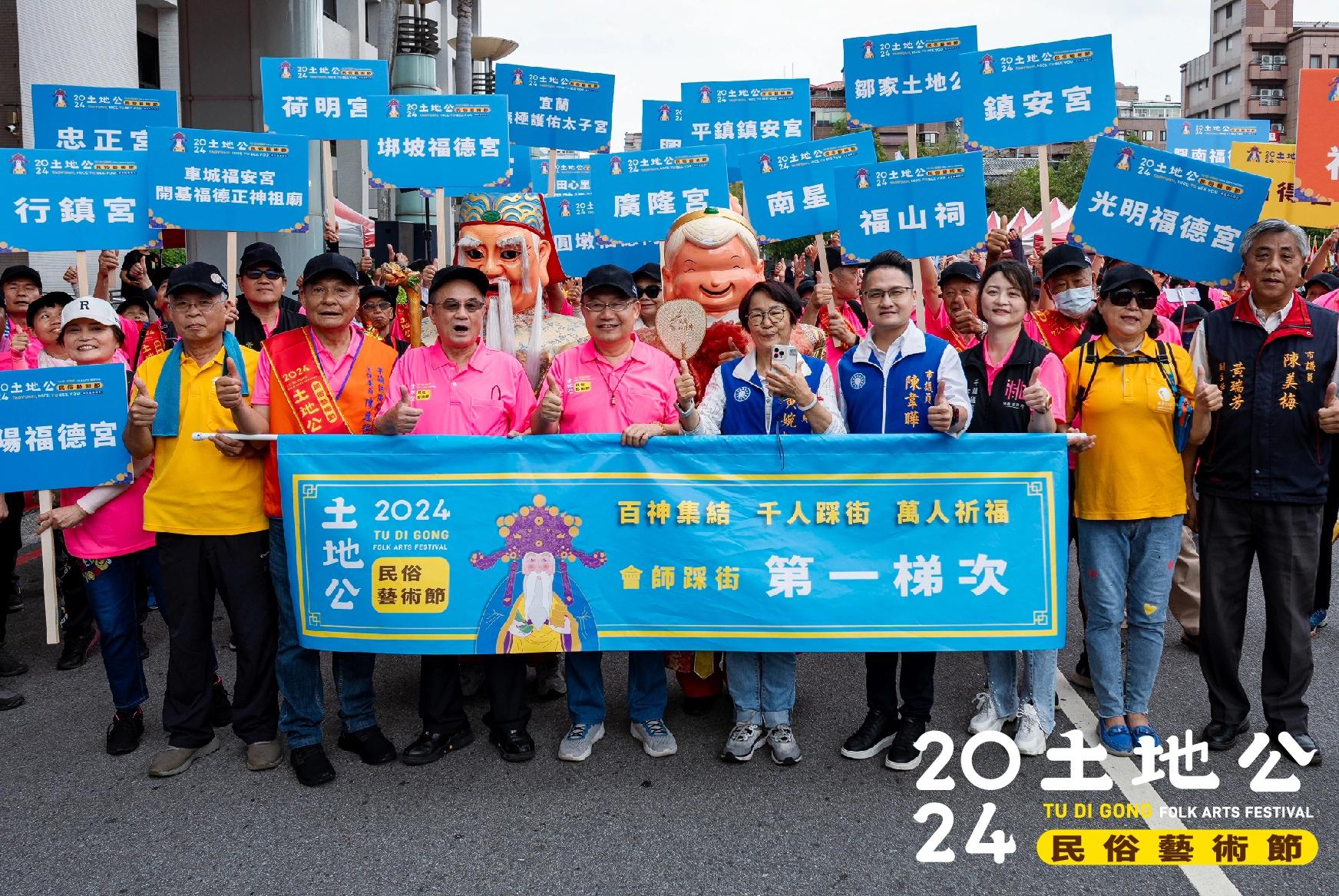 下午13:50百神集結於市府廣場前,踩街由桃園大廟景福宮鈞天社的舞獅陣頭拉開序幕,而北港大藝閣車也一同踩街、發送糖果,如果兒童劇團的土地公空飄氣球、演員土地公及土地婆,以及土地公文化館邀集的「虎爺親子隊」成為踩街中最吸睛療癒的一群,將歡樂帶給現場的所以民眾。今年活動首度邀請社區共同參與踩街表演,展現各界為民俗藝術努力的成果!