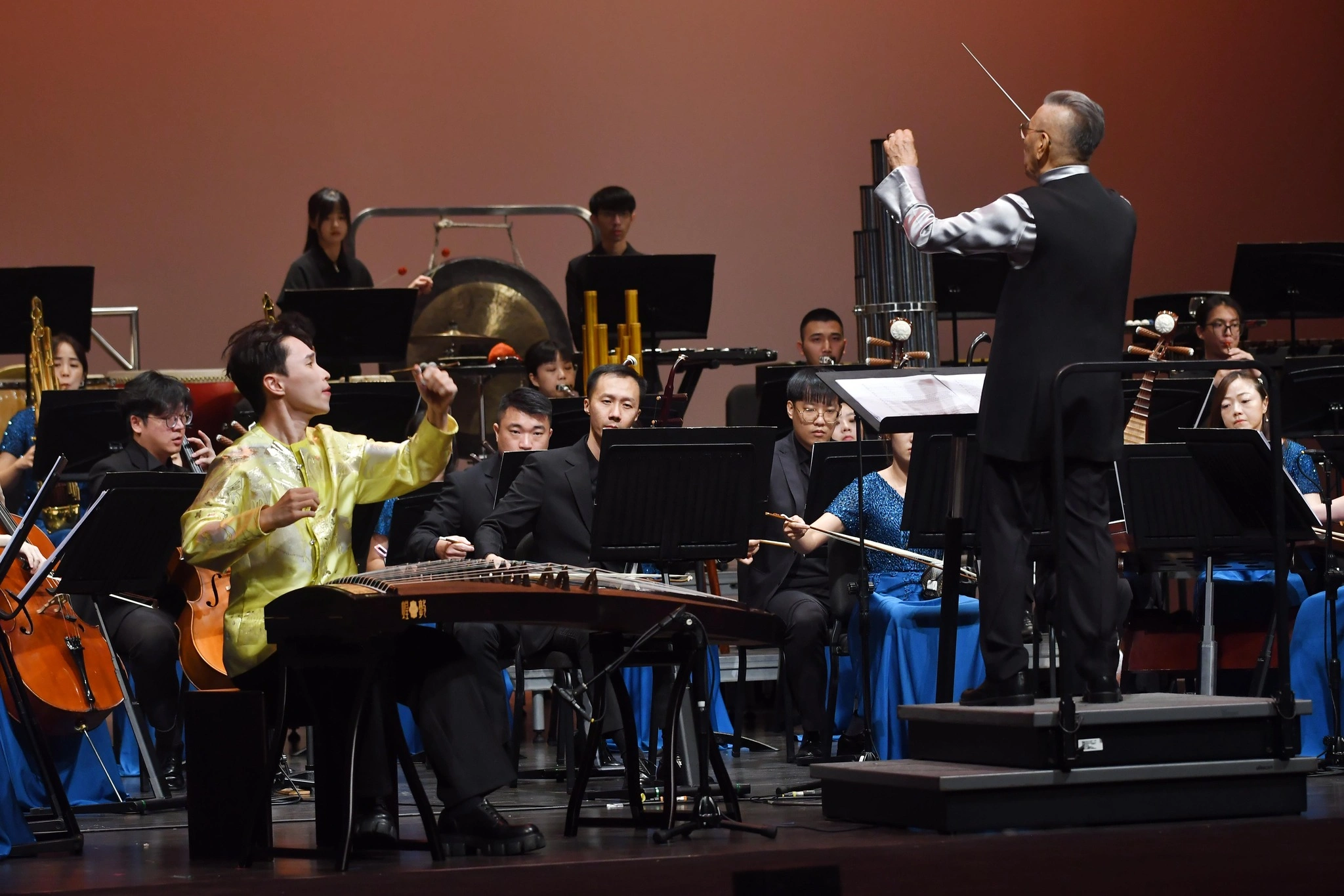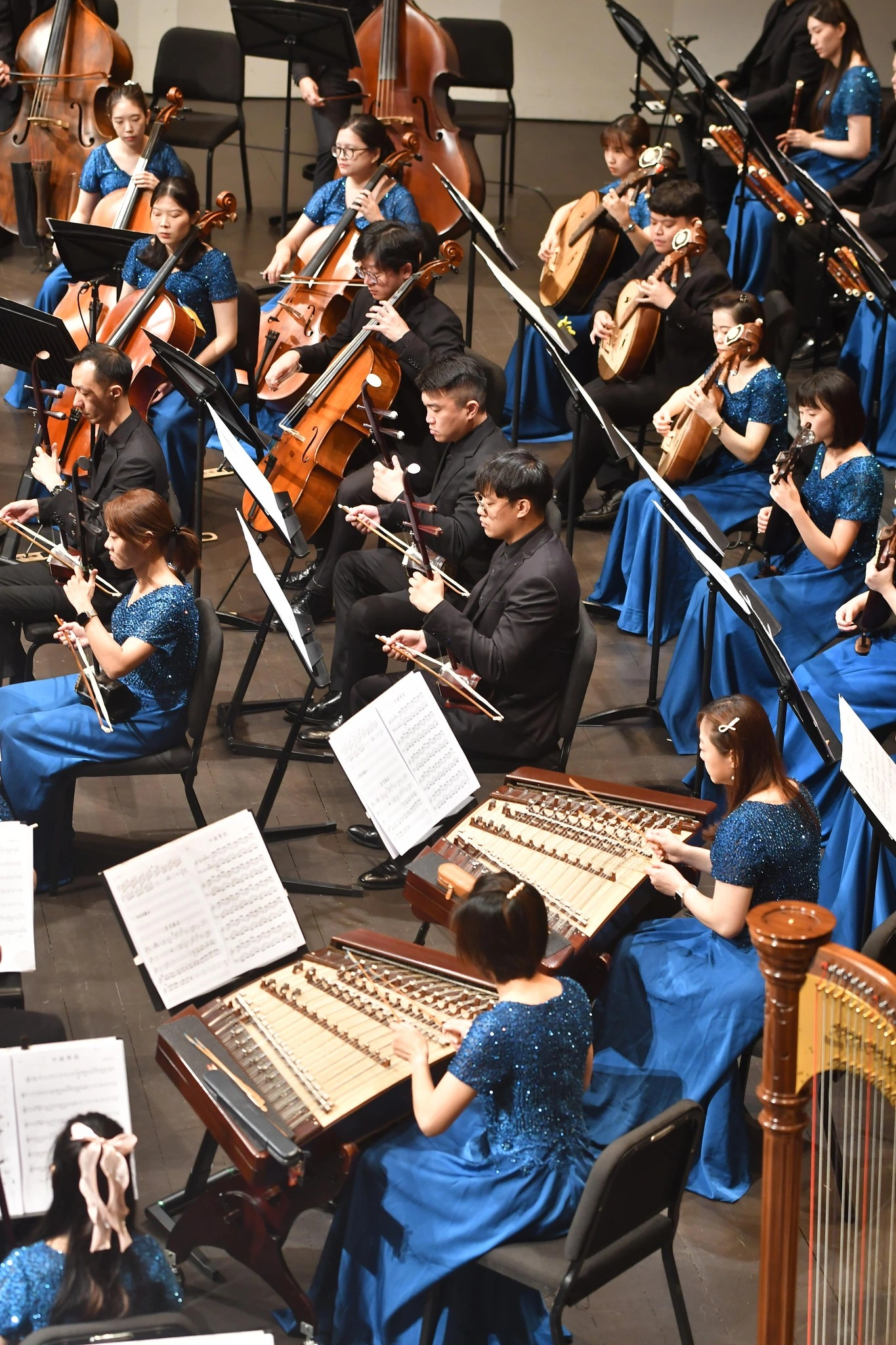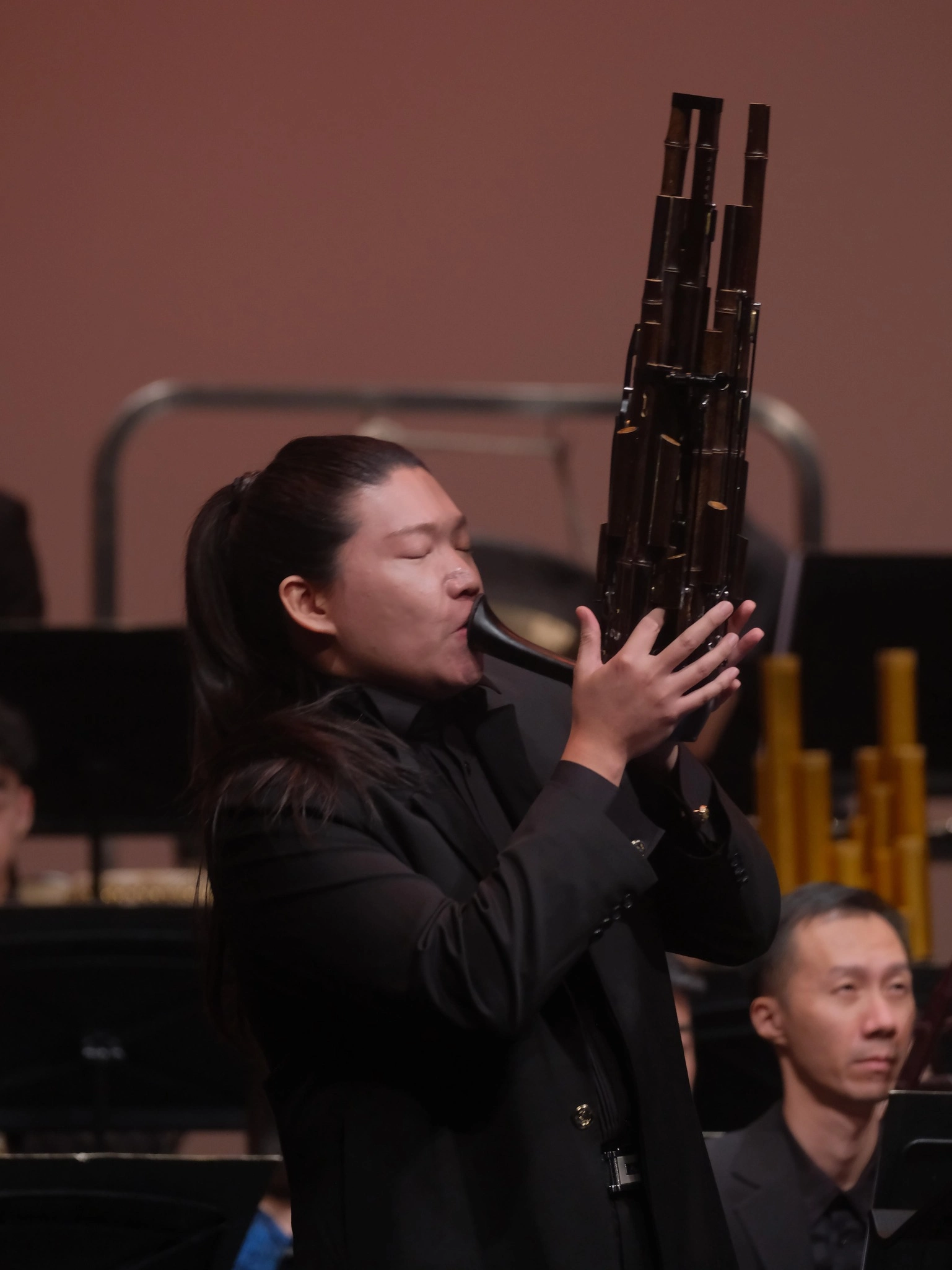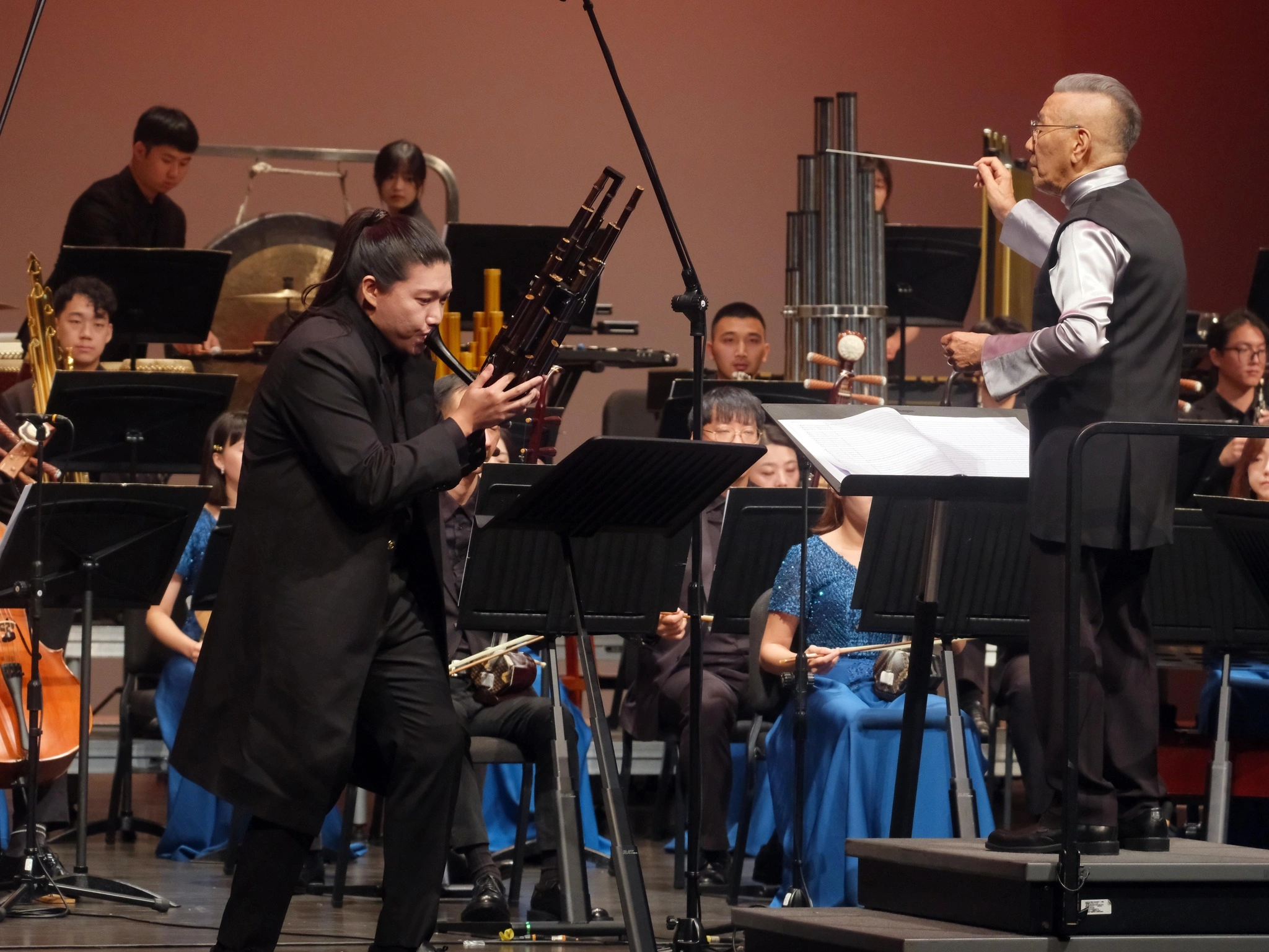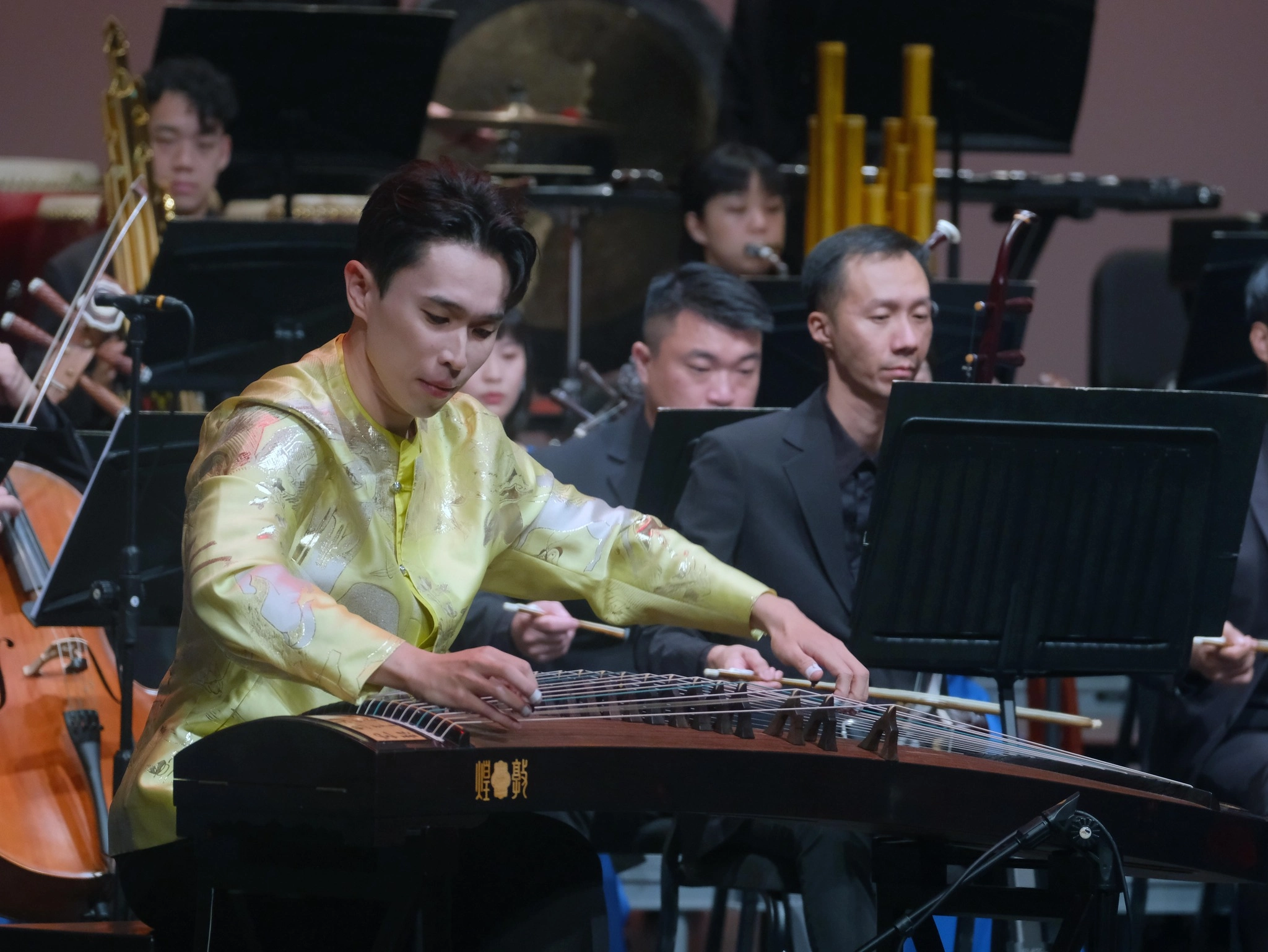 凝聚九年的能量由桃市國首席指揮瞿春泉帶領樂團精準掌握音樂張力,將整場節奏推向層層高潮,臺灣國樂青年音樂家繁星計之臺南市民族管弦樂團琵琶演奏家劉昀臻揭開序幕,以《對雪》裡細膩指法描繪冬雪之美,在冷冽與溫暖之間交織動人;臺北市立國樂團笙演奏家孫衍詳 演出《魔鬼與靈魂的秘密》中展現扣人心弦的張力,每一次換氣都牽動全場的呼吸,青年演奏家們綻放令人驚豔的光芒
