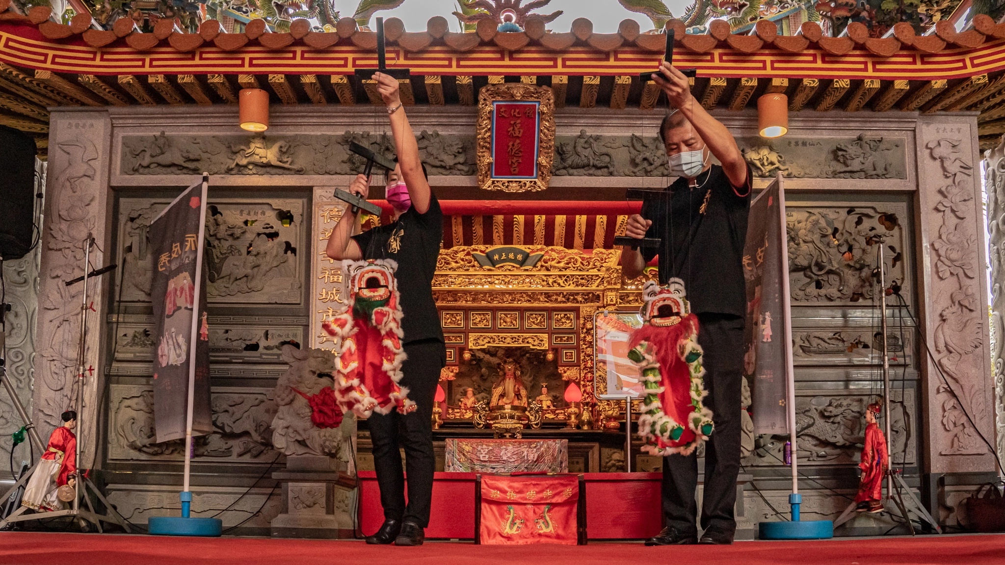 民間宗教酬神活動中,神明聖誕、答謝平安等會邀請民間偶戲表演給神明觀看。隨著時代變遷,傳統戲曲也走進劇場、社區與學校之中,結合傳統與創新,發展更豐富多元的表演藝術風格。