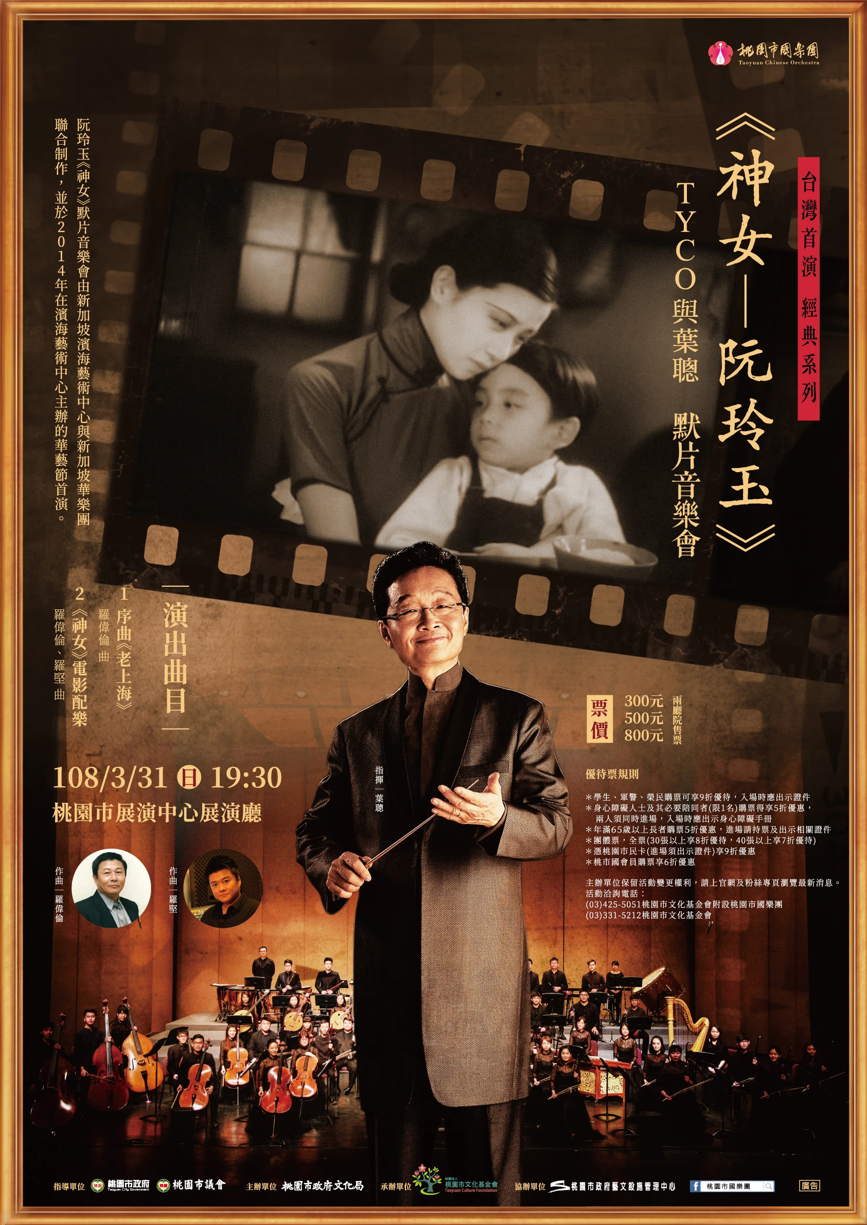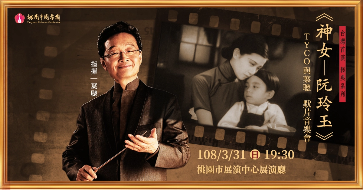 桃園市國樂團將與國際知名指揮家葉聰攜手合作,在台灣首演《神女:阮玲玉》創造一場絕佳視覺及聽覺再現之作,如此堅強的陣容使樂迷可以一睹這不朽的畫面重回舞台,彷彿一切歷歷在目,感受著絕妙的融合與完美的呈現。
