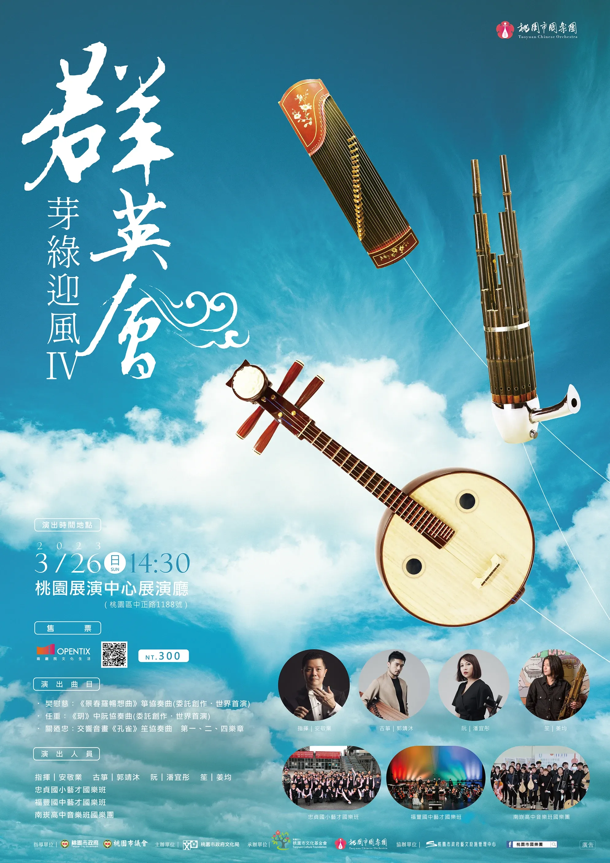 桃園市國樂團致力於藝術教育推廣,《芽綠迎風Ⅳ-群英會》秉持過往傳統,邀請忠貞國小、福豐國中、南崁高中等國樂社團菁英同場演出,另由指揮安敬業、桃園市國樂團領銜共邀傳藝金曲獎「最佳跨界音樂專輯獎」得主之古箏演奏家郭靖沐、中阮演奏家潘宜彤及2022年桃市國器樂大賽笙組「最佳詮釋獎」得主—姜均,演譯激盪出國樂的潛力與優美的旋律,在這春迎大地欣欣向榮的午後時光,邀您細品《芽綠迎風IV-群英會》,彷彿春風迎來百花開🍃 🌸🍃 🌸🍃