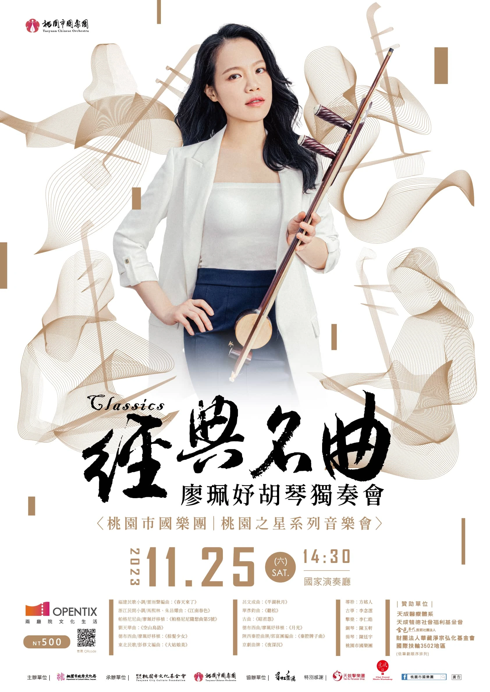 《經典.名曲》由廖珮妤擔任胡琴獨奏,其最大亮點為獨奏家需駕馭五種不同總類的胡琴,透過二胡、高胡、低音二胡、京胡、板胡不同的胡琴特性,展現胡琴多變迷人的魅力。音樂會曲目挑選具代表性、及時代淬鍊的經典名曲為主,演奏曲目穿越古今,遊走東西,涵蓋七大類:華彥鈞(瞎子阿炳)民間音樂代表作、劉天華二胡十大名曲、江蘇曲風、西洋名曲移植、廣東音樂、京劇曲牌、北方板胡代表作品。