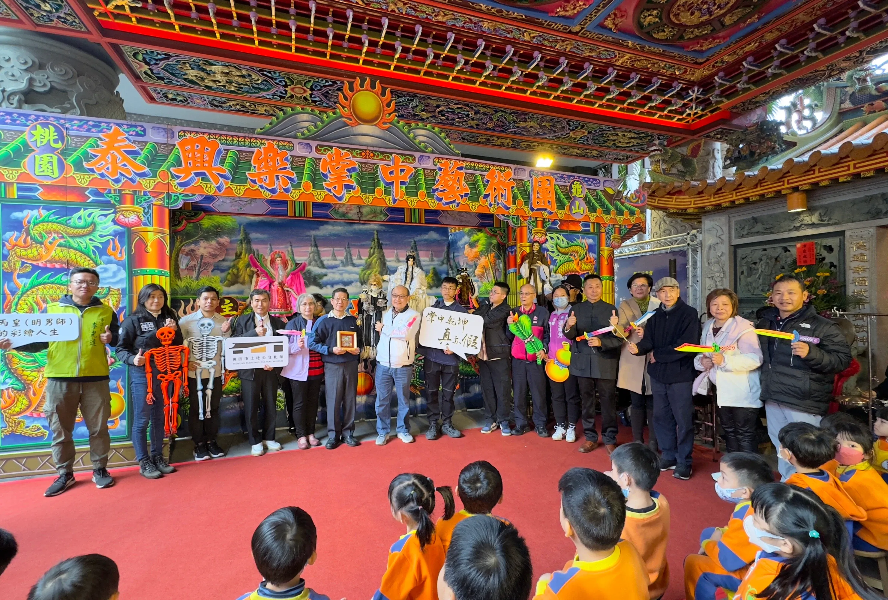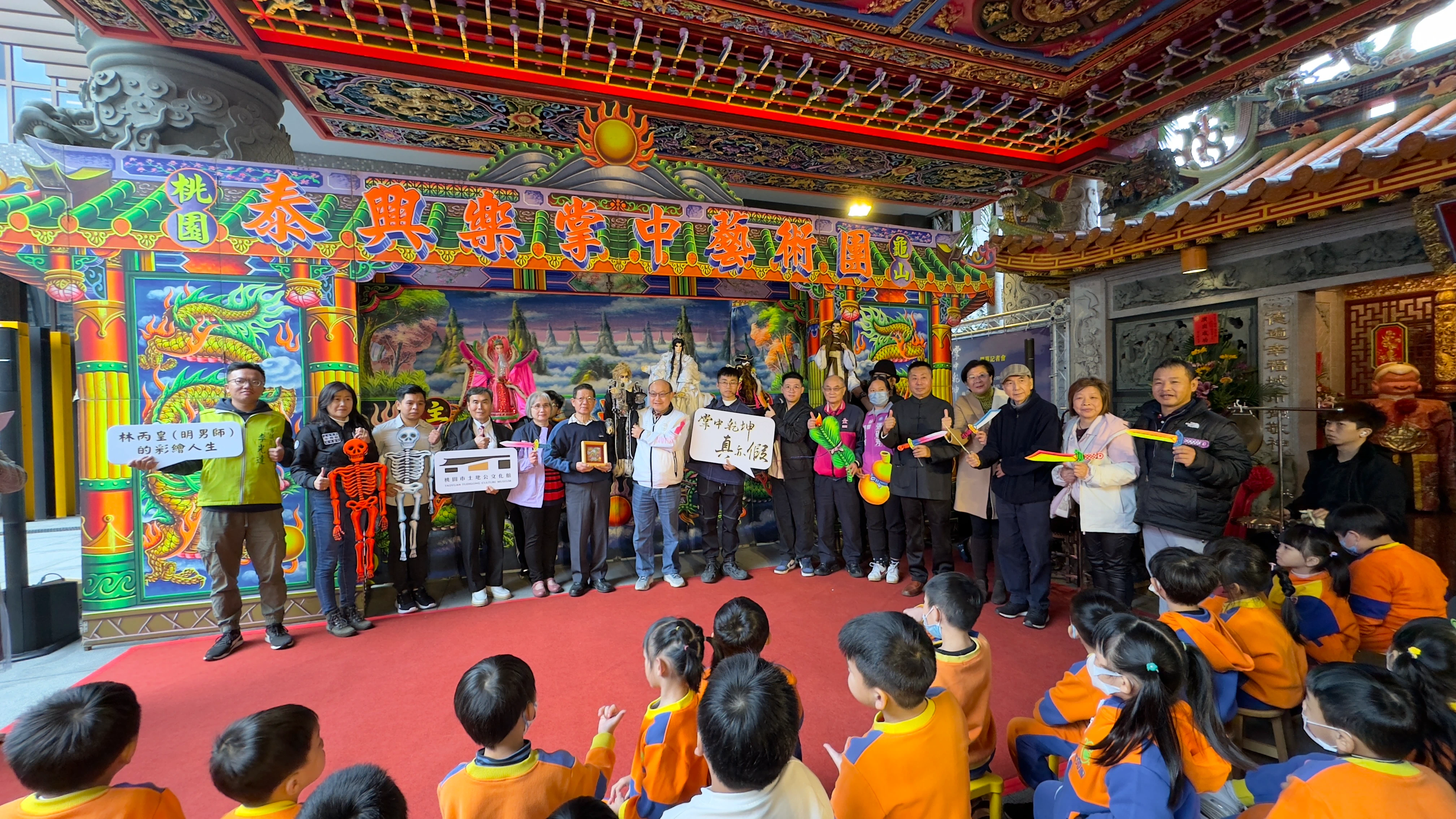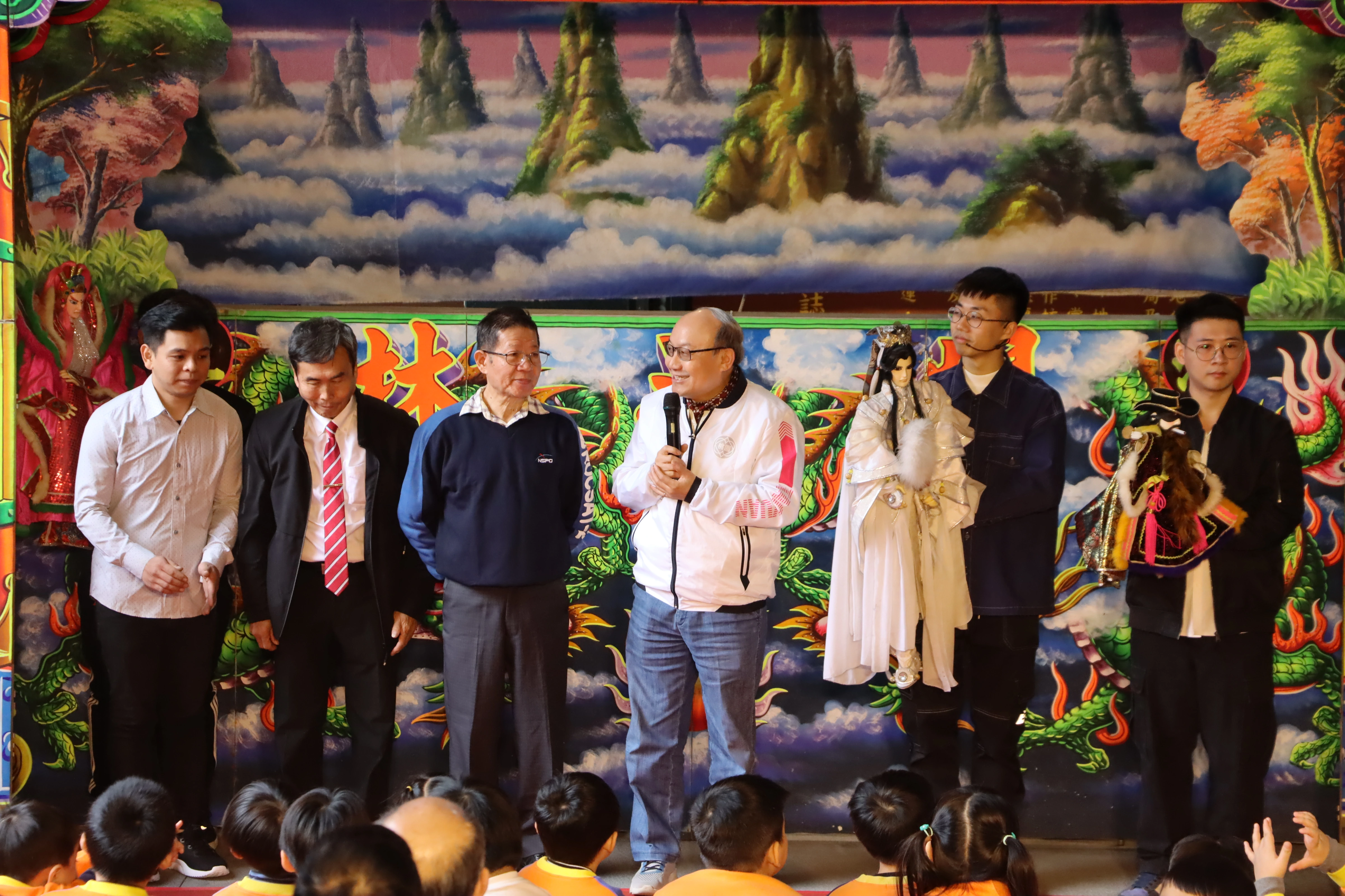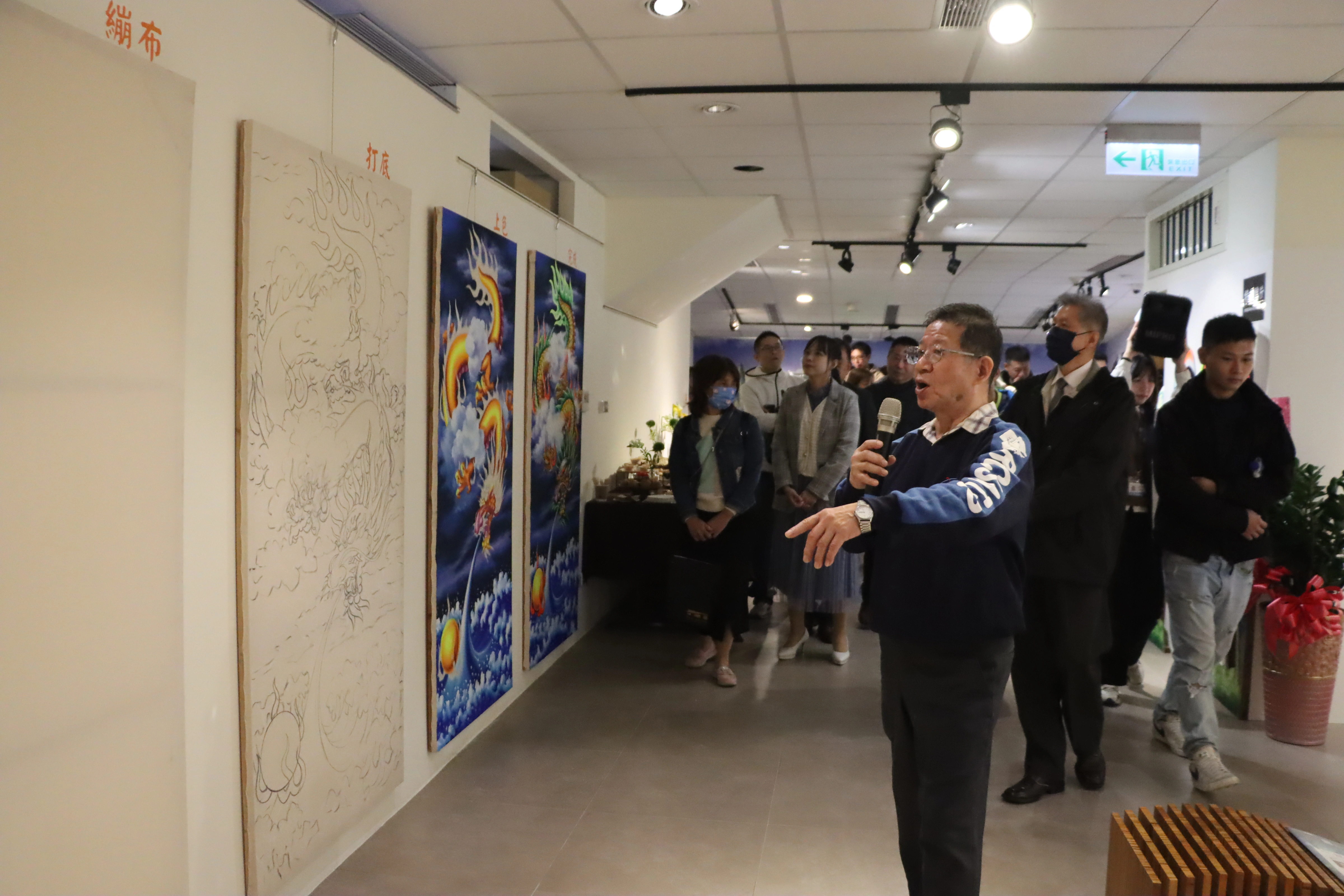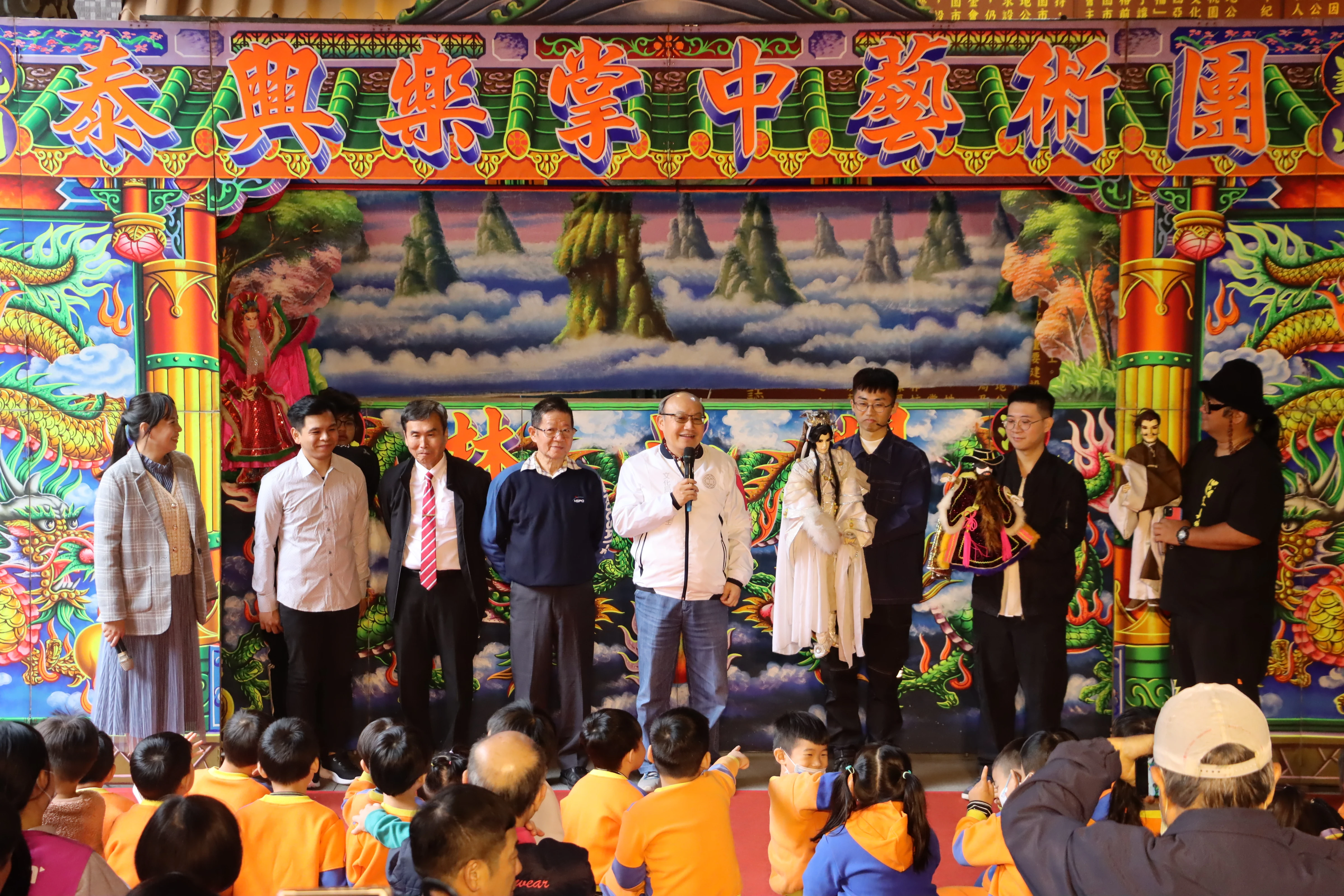 12/17下午兩點,在土地公文化館廟埕舉辦的盛大開幕記者會,邀請到隆興閣掌中劇團、泰興樂掌中藝術團、日日大掌中木偶劇團、新世界第五掌中劇團等四大劇團同台拚場,輩分最高的隆興閣掌中劇團廖昭堂團長壓軸口白請出明男師跟現場媒體說話,明男師靦腆說道:「佈景是劇團的門面,恰如其分的背後佈景更能襯托劇情的張力,在演師靈巧的指動中加上震撼力的口白,使觀眾的思緒完全被劇情所牽引,而佈景的製作,除了自己的靈感外,更要了解劇情的內涵,才能達到整體效果。」