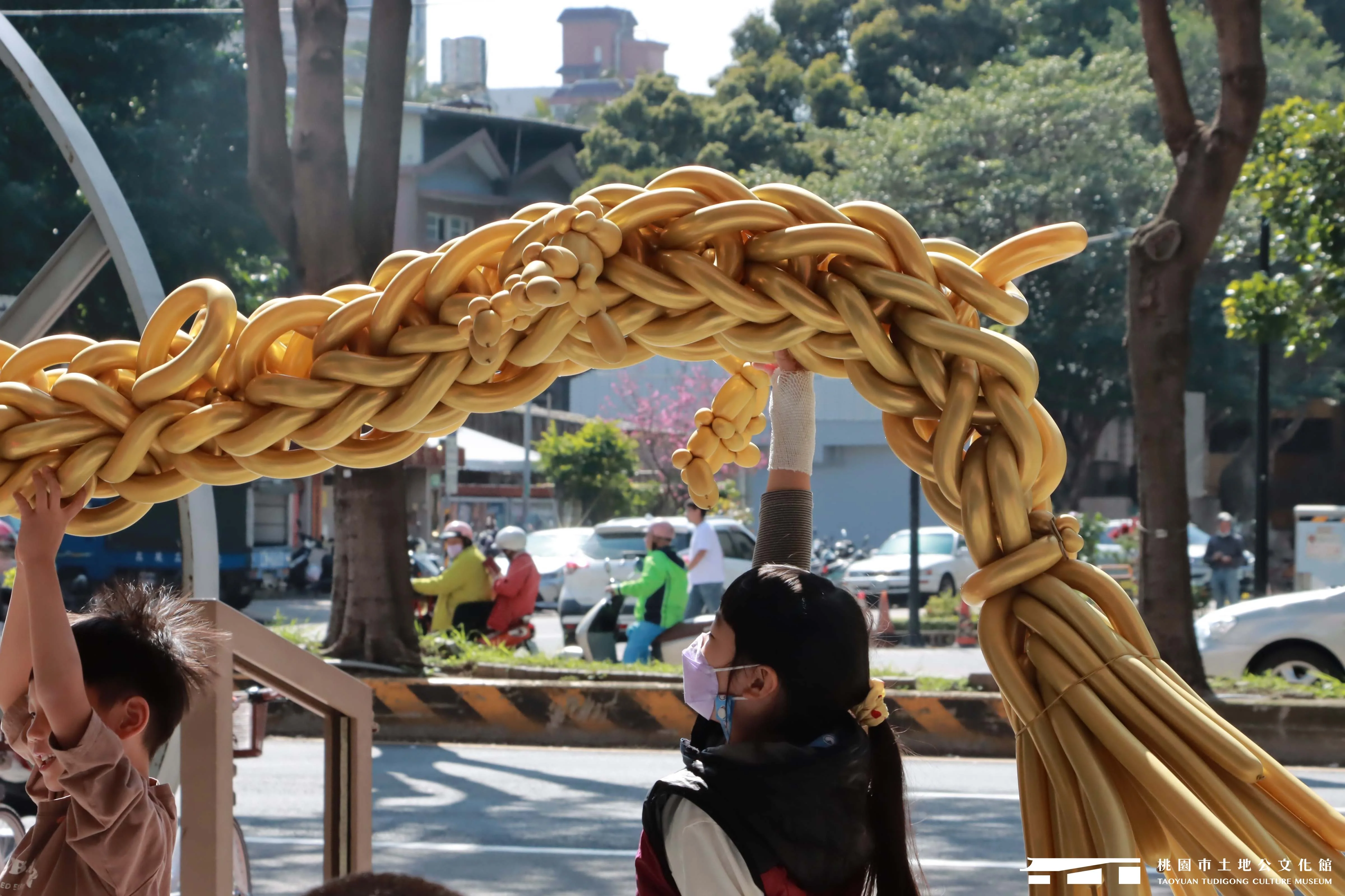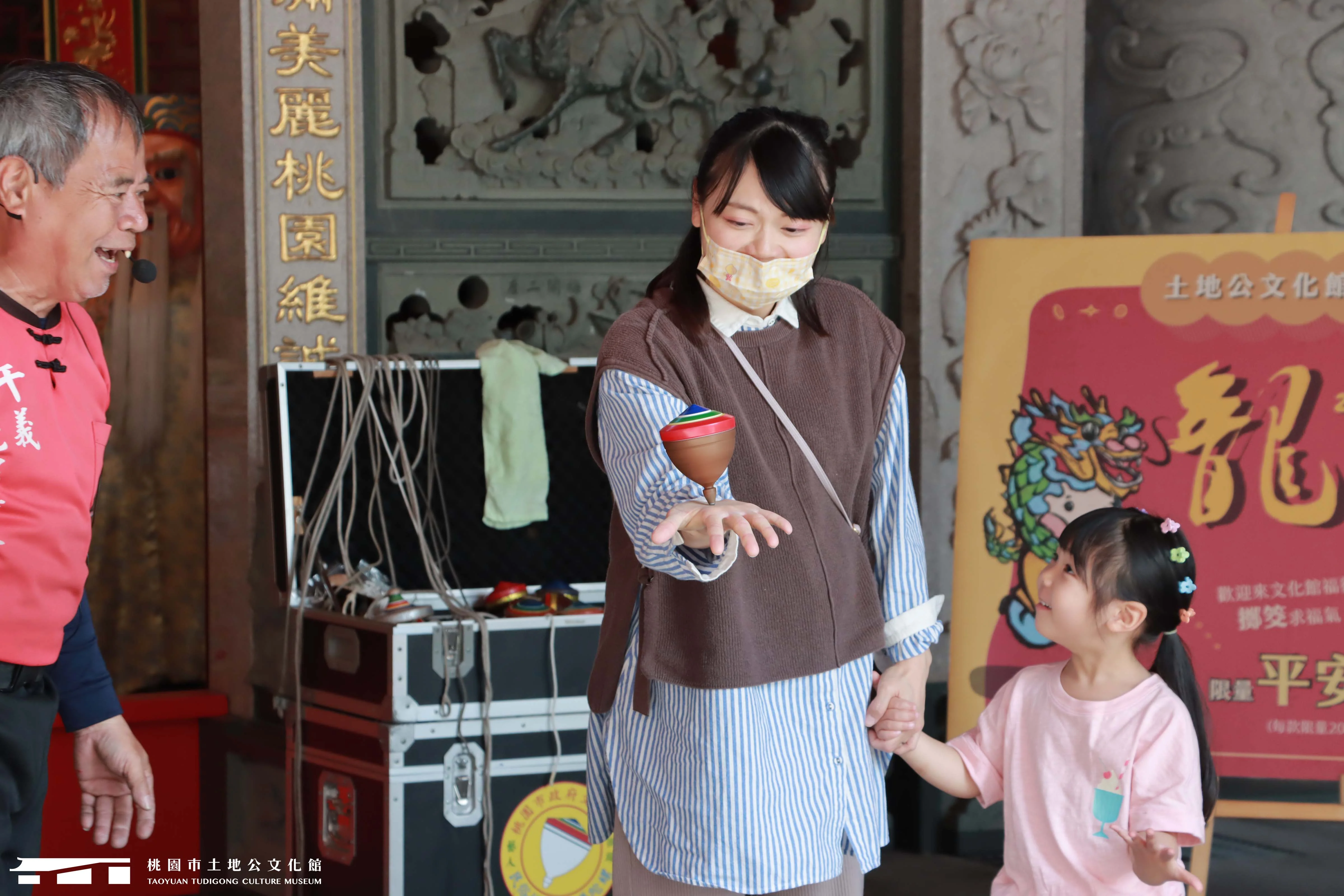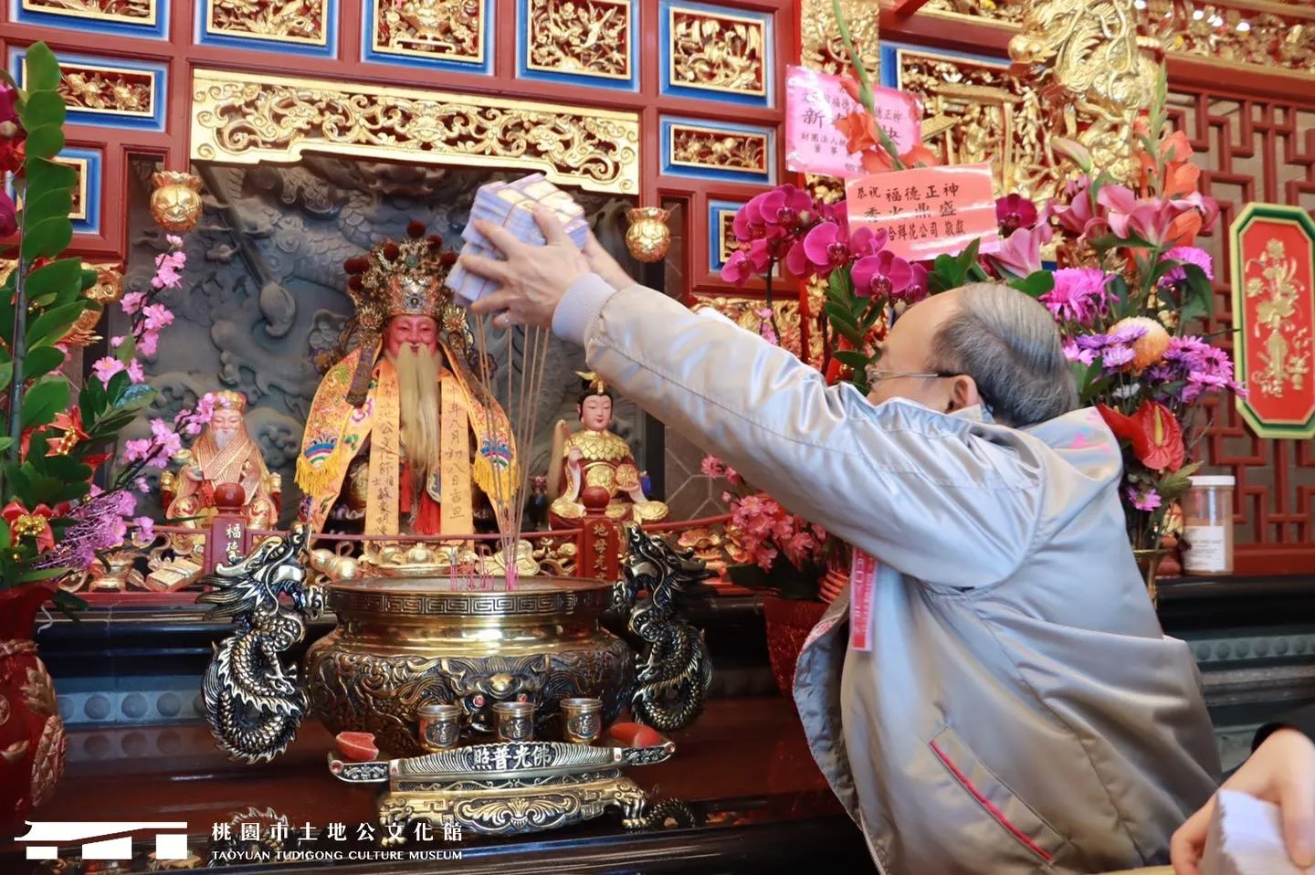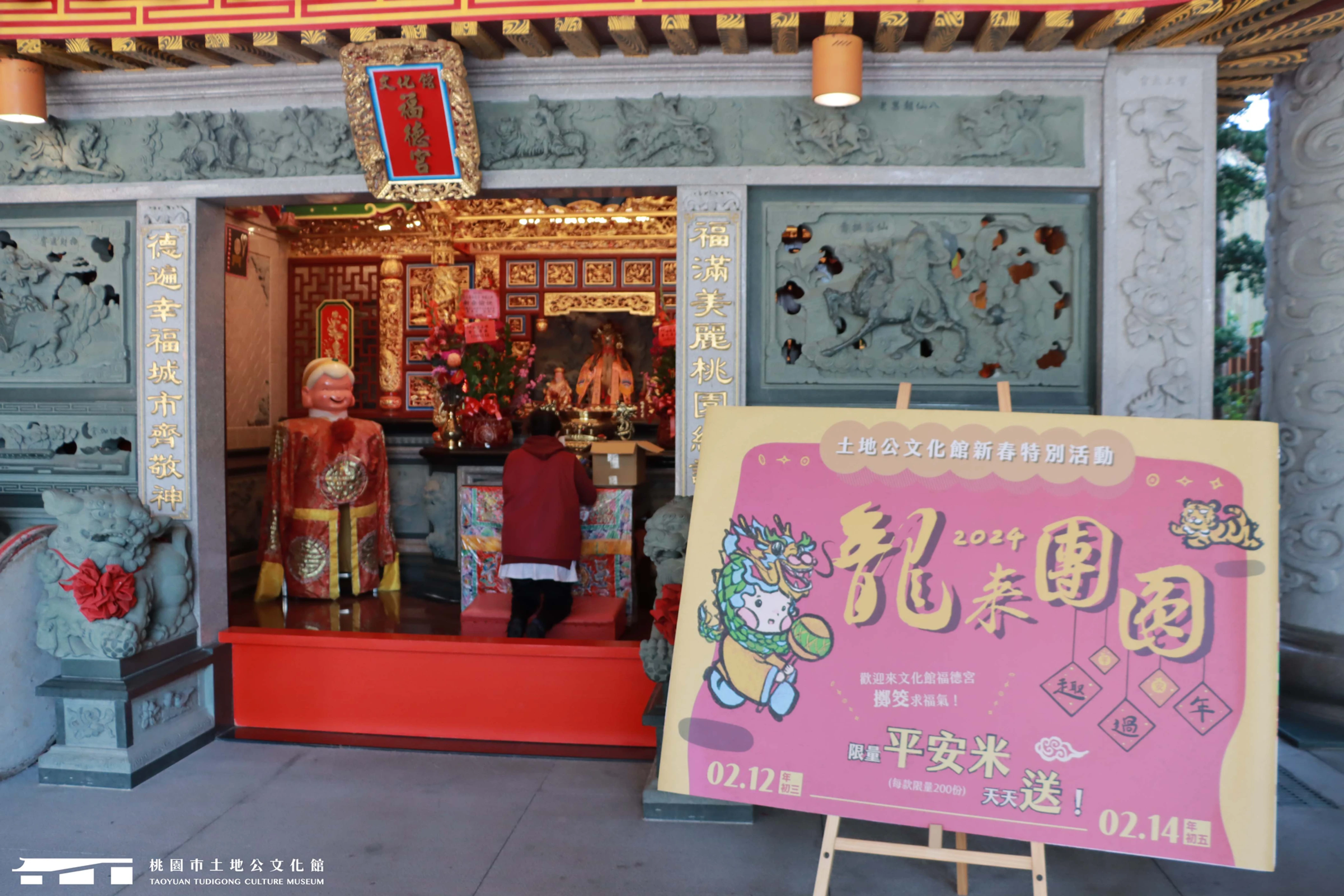 中午時,桃園市文化局邱正生局長更親臨現場,為2024年土地公平安卡過香火,並發送紓壓仙桃玩具,將新春滿滿的祝福分送給參與民眾。