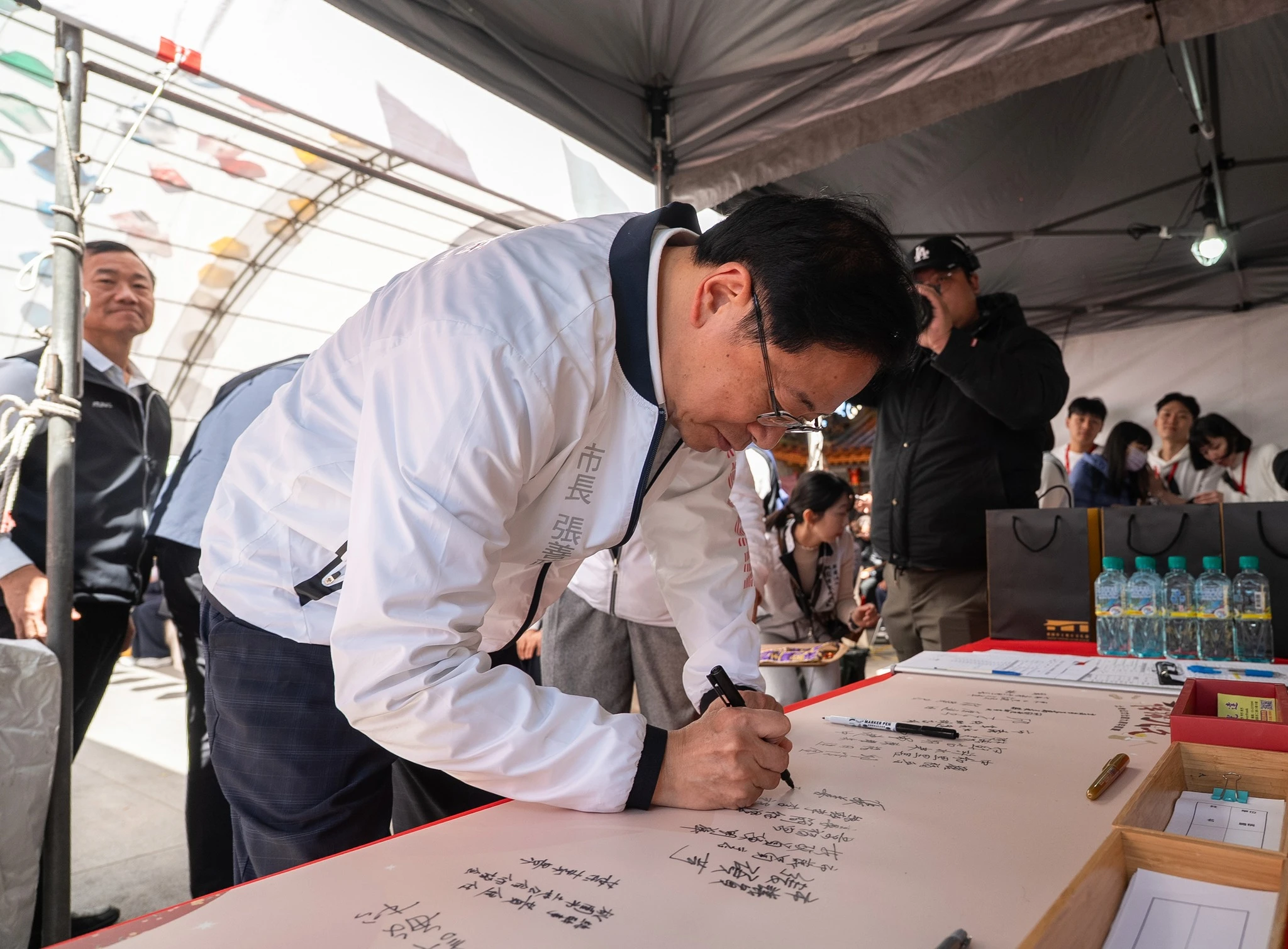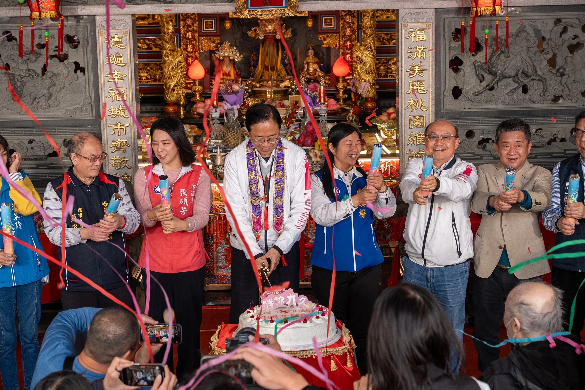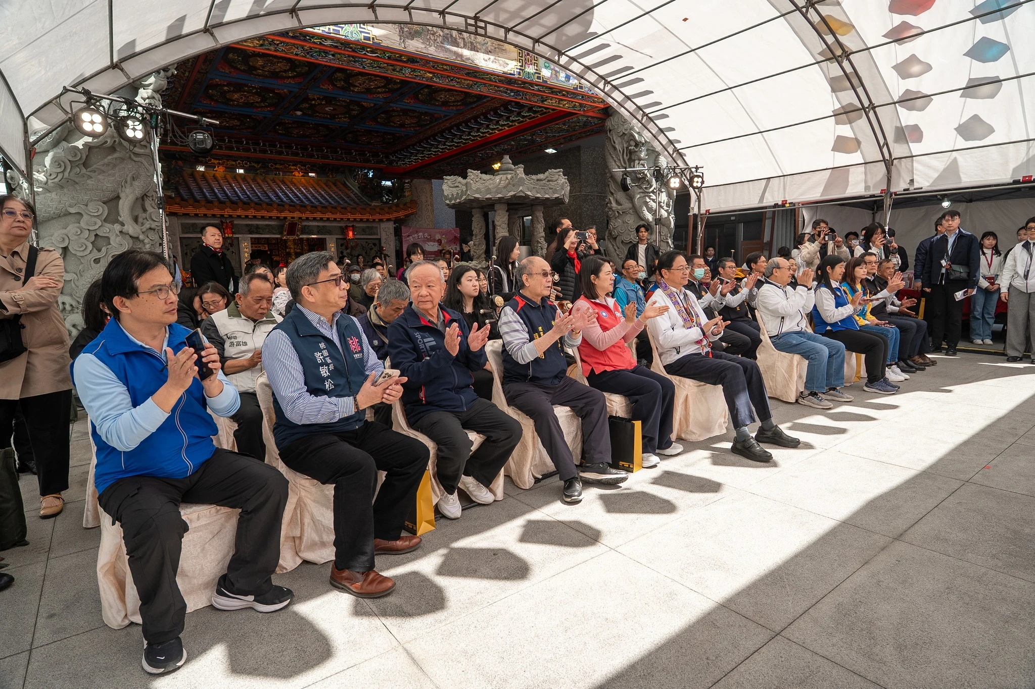 桃園市大家長張善政市長蒞臨現場,與市議員陳美梅、張碩芳,市府文化局長邱正生、桃園區長許敏松、桃園信用合作社理事主席蘇家明、桃園大廟景福宮主委簡征潭、總幹事李詩明、中壢仁海宮副董事長鍾福晉及多位董監事、桃園市土地公文化教育基金會執行長陳正釗、桃園市土地公信仰協會總幹事黃進仕、正一道教桃園妙應壇道長許少豪等貴賓,共同見證這個別具意義的時刻。