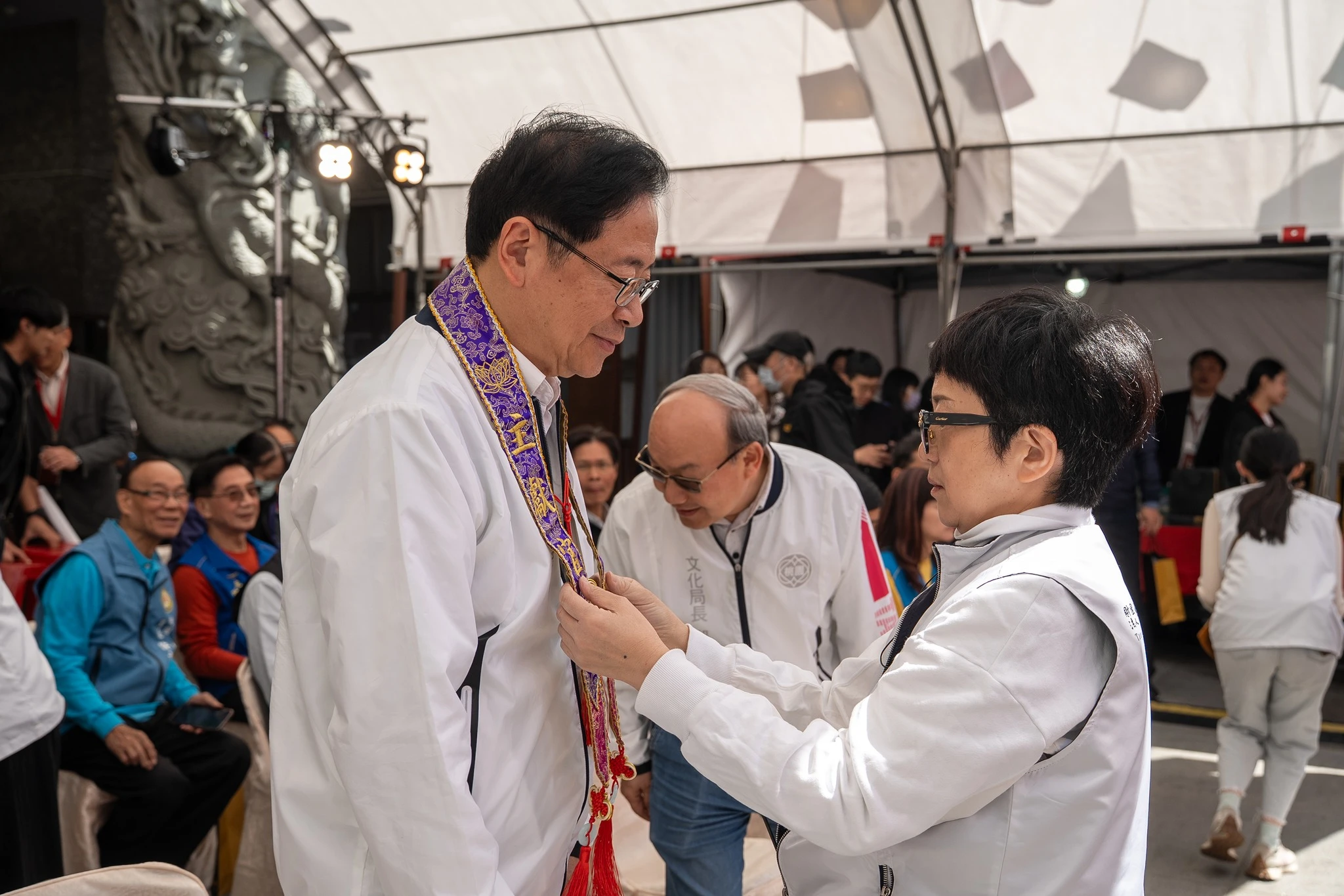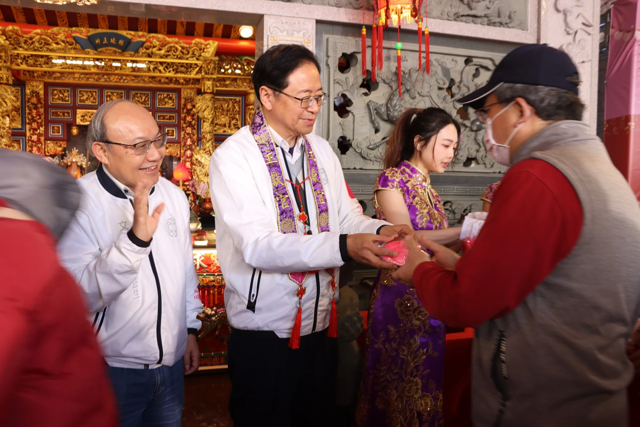 在福德宮前,由桃園妙應壇許少豪道長,主持傳統「三獻禮」祈福儀式,市長擔任主獻官,代表桃園市民向市公獻上最誠摯的祝福!期待透過這項具有文化意義的傳統禮儀,不僅向神明表達感恩與祝福,也讓現場民眾親身感受民間信仰與傳統禮俗的文化之美![]()