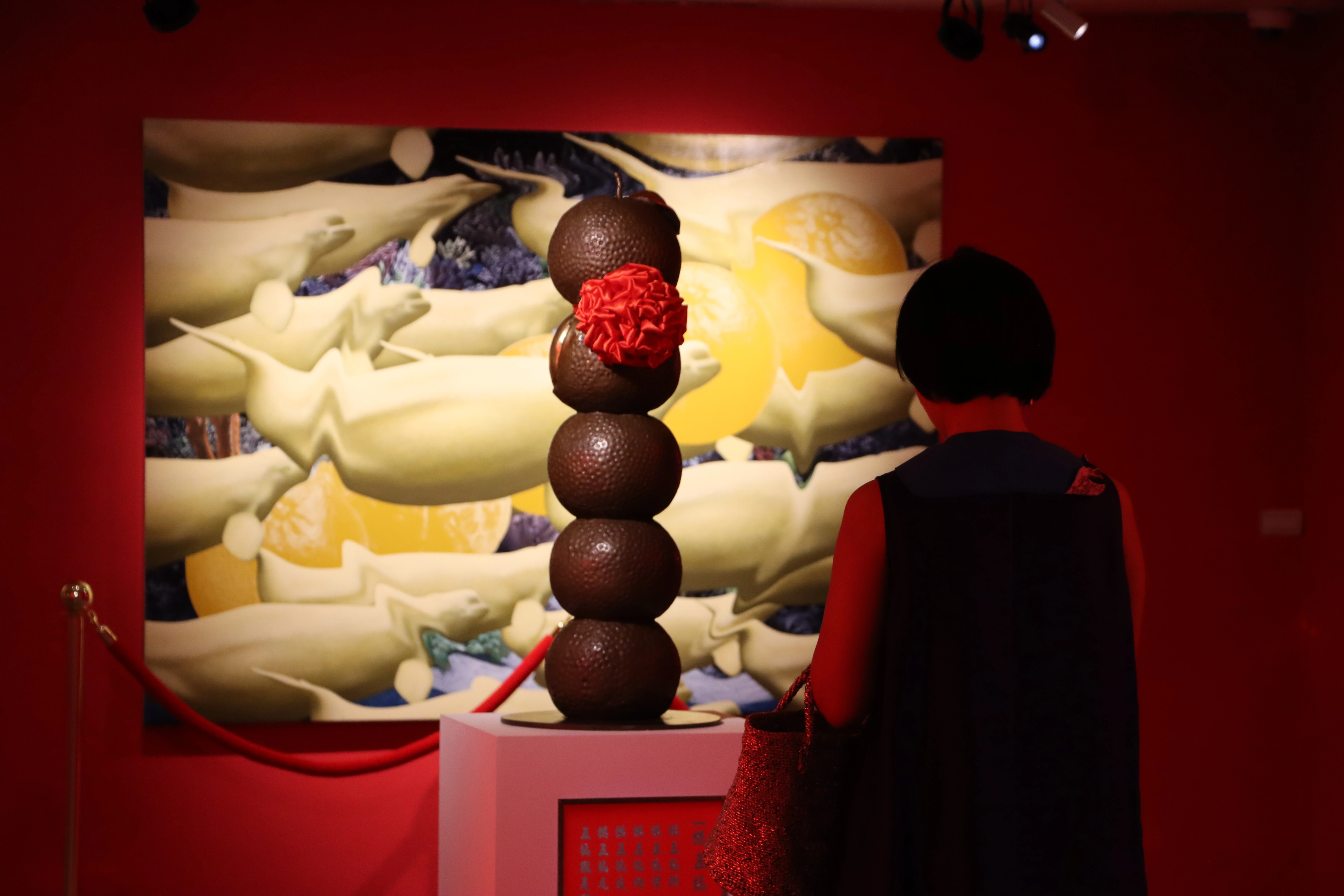 記者會後錢龍議座、陳美梅議座與李曉鐘副議長特助李凱倫由邱正生局長親自陪同前往展場觀展,參展藝術家們親自導覽,貴賓們佇足細細欣賞每一件參展作品,對藝術家們從當代藝術的角度詮釋民俗信仰感到興味盎然。