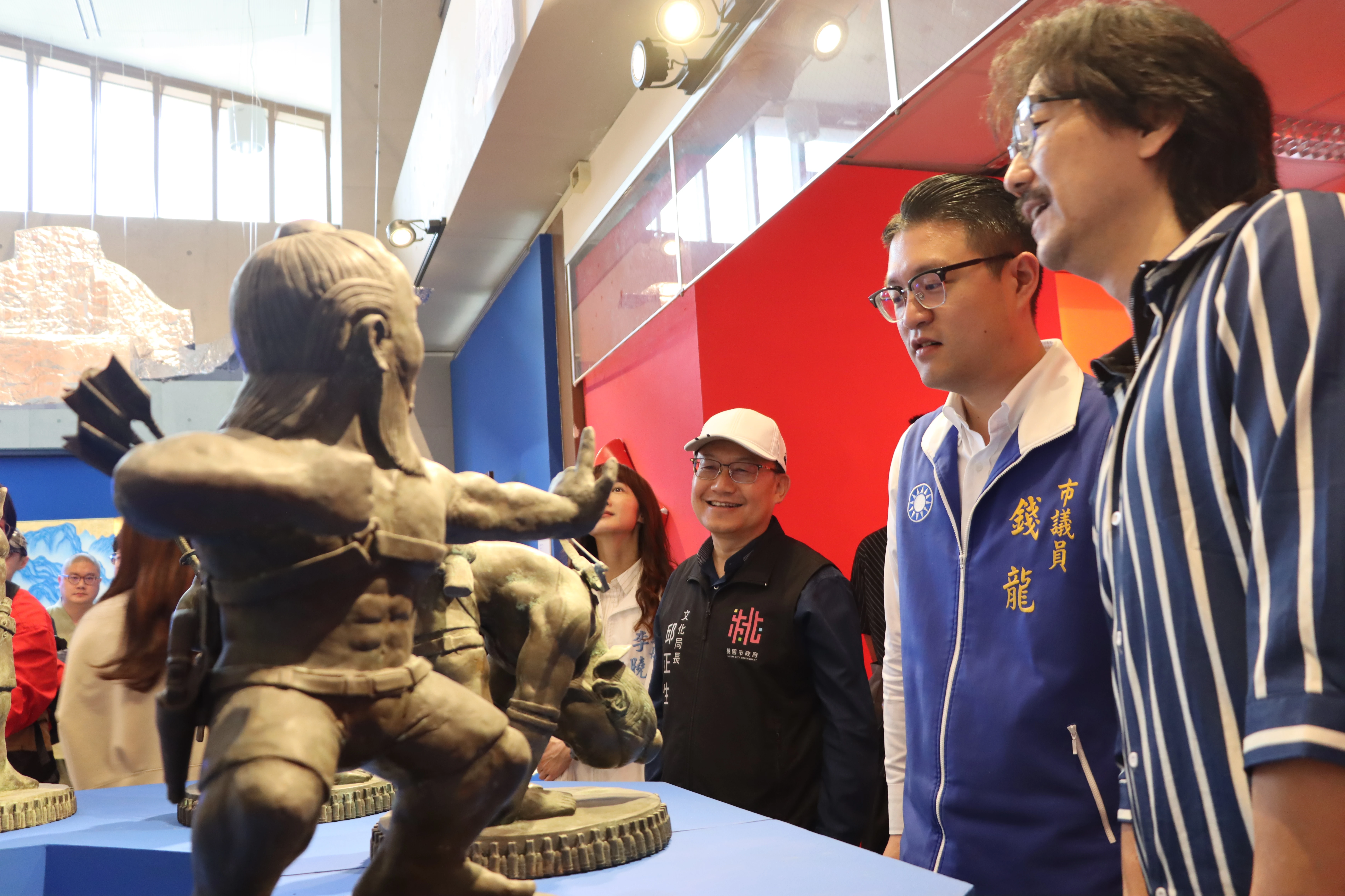 今日出席的貴賓有桃園市副市長王明鉅、桃園市政府文化局局長邱正生、桃園信用合作社理事主席蘇家明、藝術家統籌姚瑞中、立法委員牛煦庭辦公室主任關筱藍、桃園市議員陳美梅、桃園市議員張碩芳、桃園市議員錢龍、桃園市市議會副議長李曉鐘特助李凱倫、桃園市議員黃瓊慧辦公室特助邱海禎、桃園市議員黃婉如辦公室助理馮姵蓉、桃園市議員李光達辦公室特助游富雄、桃園市議員 于北辰辦公室副主任林玉芬、桃園市議員許家睿辦公室助理黃展御、桃園區區長許敏松、桃園大廟景福宮總幹事李詩明、中壢仁海宮副董事長鍾福晉、常務監事林建宏、董事劉怡江、黃月妃、張國清、黃仁德、翁德銘、王前耀、桃園市政府民政局專門委員魏淑貞、桃園市土地公文化教育基金會執行長陳正釗、中華道教總會青年會主任委員陳重佑、東山里里長游文章、朝陽里里長卓正斌、軌道願景館館長余友良、拚場藝術撞擊聯合藝術總監李育昇、廖苡晴、龍潭龍元宮神童組組長王泰安、桃園市政府文化局專門委員王啟仲、桃園市文化基金會副執行長游冉琪、顧問簡馨泓、桃園市土地公文化館總監陳若蘭、影視事業中心總監江定民、臺灣永續原生內容有限公司陳斌華。
