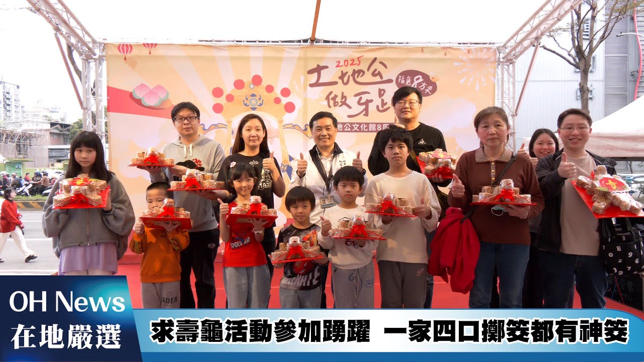 桃園市土地公文化館8周年慶典 張市長:延續文化傳承重要據點 一家四口來擲筊求壽龜 每個人都神筊開心抱回壽龜......