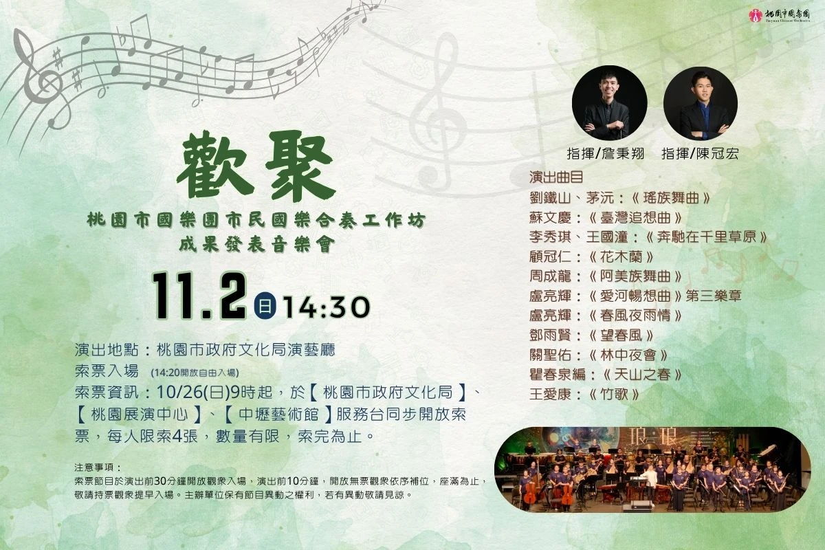 不僅是學員一年努力的最佳見證,更是桃園國樂力量持續深耕、向下扎根的重要展現。觀眾將在多彩的樂音中,聽見學員們對國樂的熱情與城市文化的生動回響。