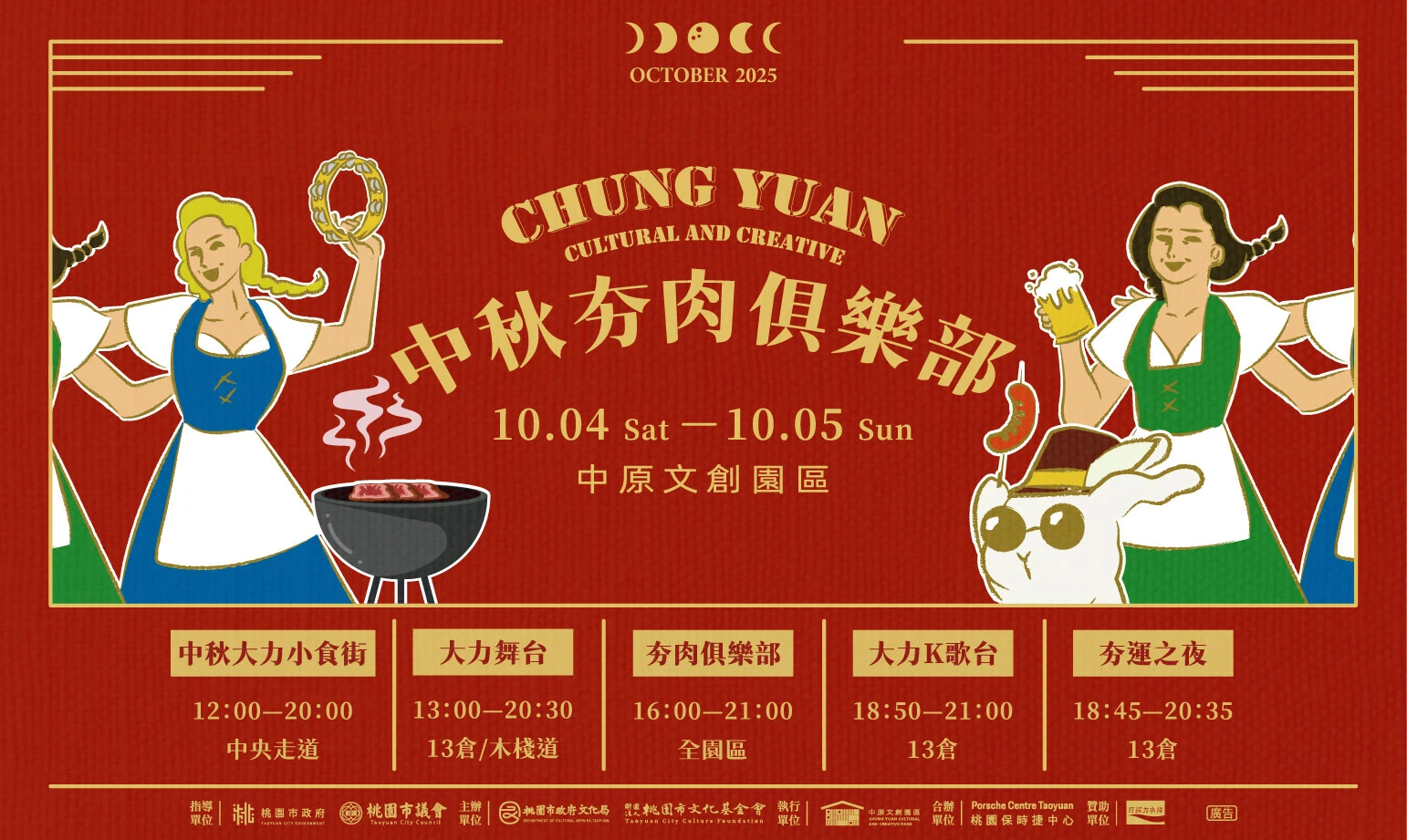 今年中秋,不要再宅在家烤肉啦! 來《中原文創—中秋夯肉俱樂部》和朋友、家人一起在星空下舉杯暢飲、熱火開烤,氣氛拉滿、歡笑滿滿,中秋就該這樣過。