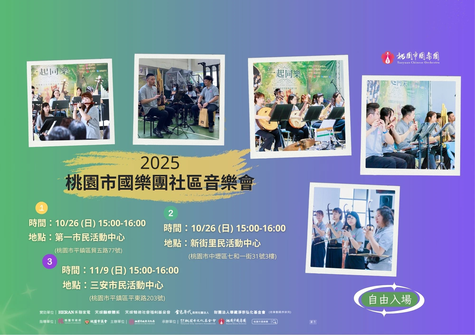 2025桃園市國樂團社區音樂會 將於10/26(日)、11/9(日)精彩登場! 🎶 全程免票,自由入場 🎶
